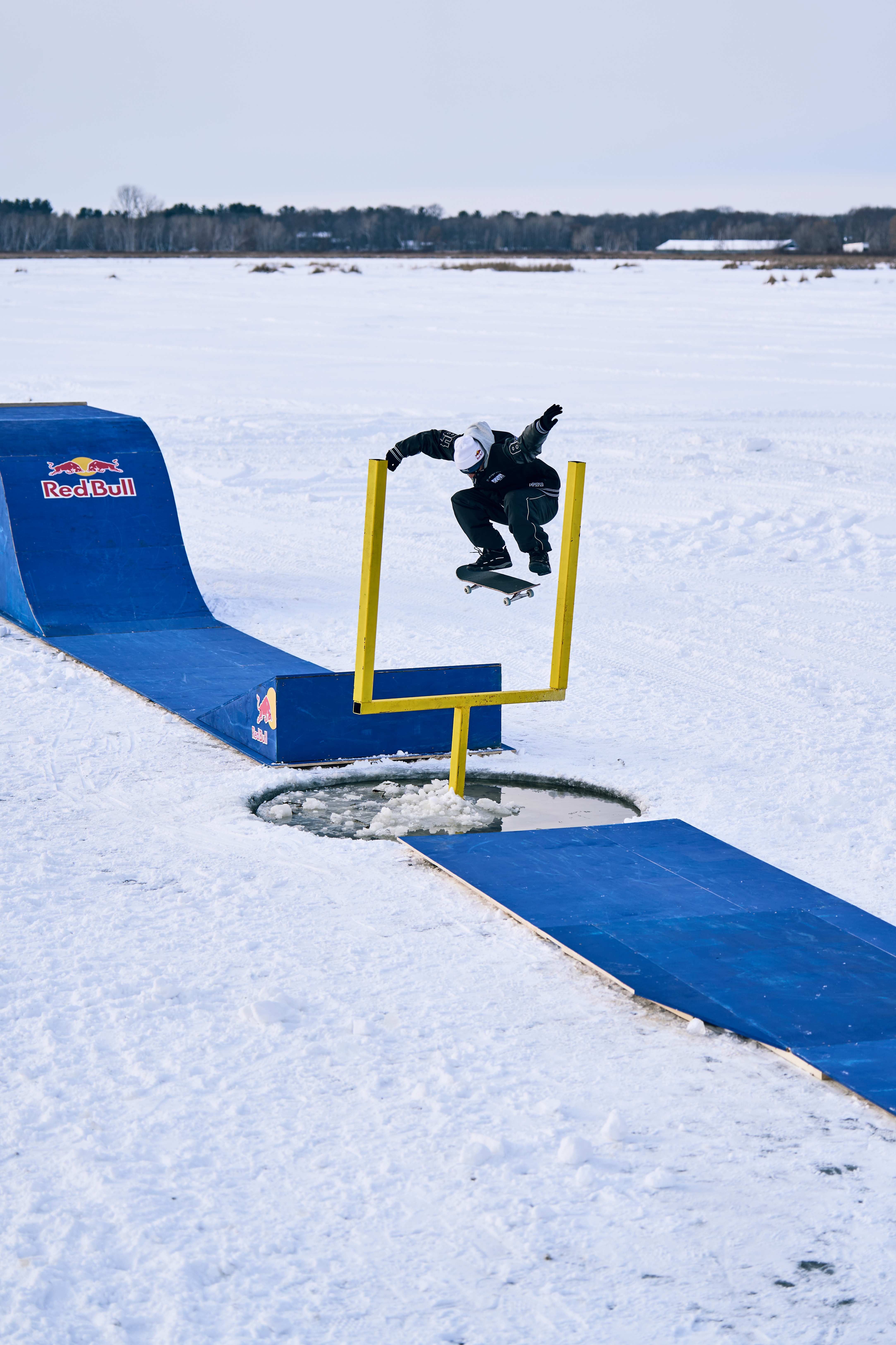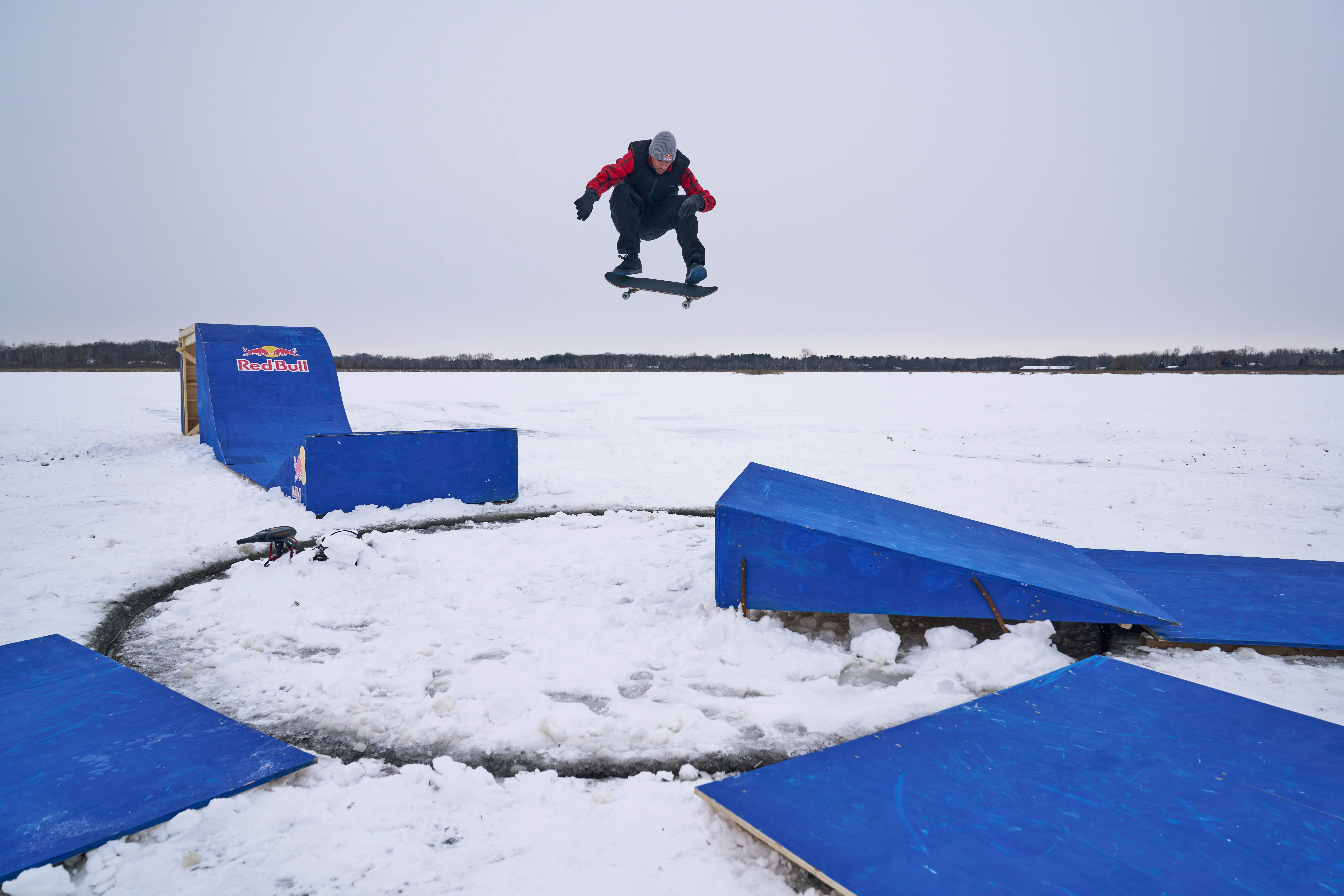 Même Decenzo, l’« expert du skate sur neige », a trouvé ces températures et leurs conséquences inédites. « Le froid entraîne tellement d’autres complications. C’était plus difficile que de skater n’importe quel obstacle » se souvient-il. « Impossible de s’échauffer, on ne sent plus ses pieds, et les gommes des trucks sont complètement gelées et ne fonctionnent plus. Je savais que je pouvais rentrer un trick, mais ma veste me gênait. Alors je l’enlevais, mais je me retrouvais transi de froid. Quand j’ai tenté un 360 Flip au-dessus du poteau, mes pieds étaient complètement engourdis. J’ai dû me rattraper en courant sur la plateforme en bois et j’ai eu l’impression que mes pieds explosaient ».