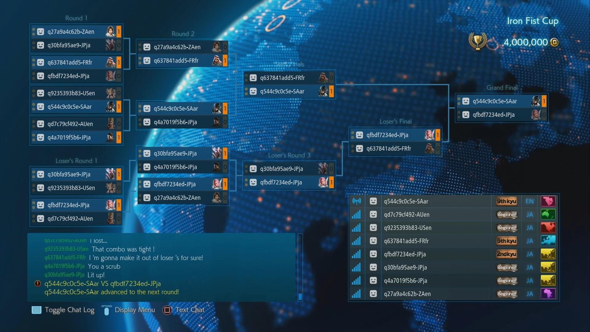 S’en suivent des fonctionnalités de jeu en ligne comprenant les matchs classés, non classés et les tournois à double élimination. Même si les options classiques de type créer/chercher une session sont présentes, le coté classé quant à lui propose, en plus de la recherche de combats, le traditionnel échauffement d’avant-match. Petit bémol et pas des moindres : pas de bouton rematch dans un salon amical et pas de belle en classé.