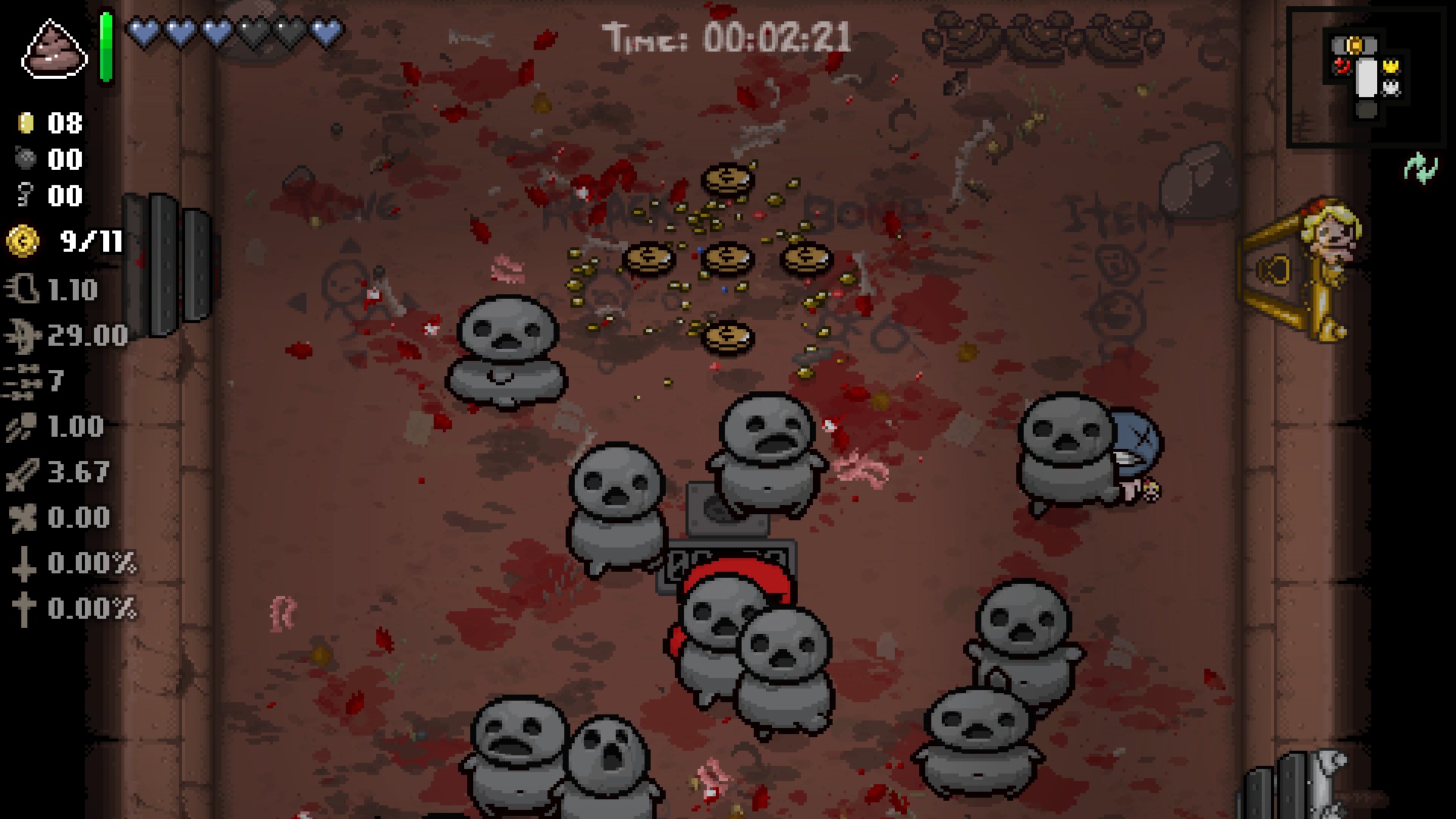 Dès le début du chantier, McMillen a une vision très claire de ce qu’il veut faire : un jeu qui brise les règles sacrées associées habituellement au succès, quelque chose de totalement « anti-mainstream ». « J’ai conçu Isaac pour être un échec », déclarera-t-il plus tard lors d’une interview accordée à nos confrères de Gamasutra. Angle d’attaque surprenant s’il en est, cette volonté de concevoir un titre aux visées impopulaires va amener le duo à explorer des concepts peu orthodoxes. Et cette créativité débridée va avoir pour conséquence immédiate de décupler leur enthousiasme. Ils sont d’ailleurs tellement emballés par ce qu’ils sont en train de concocter qu’ils vont largement déborder sur les sept jours initialement impartis à cette « game jam ». Même si, en son for intérieur, McMillen reste persuadé qu’un « roguelike » mâtiné de religion risque de ne pas rallier grand monde, et encore moins de se vendre comme son vénéré prédécesseur, le super morceau de bidoche sautillant. Mais qu’importe, ils s’éclatent, et pour l’heure, c’est là l’essentiel.