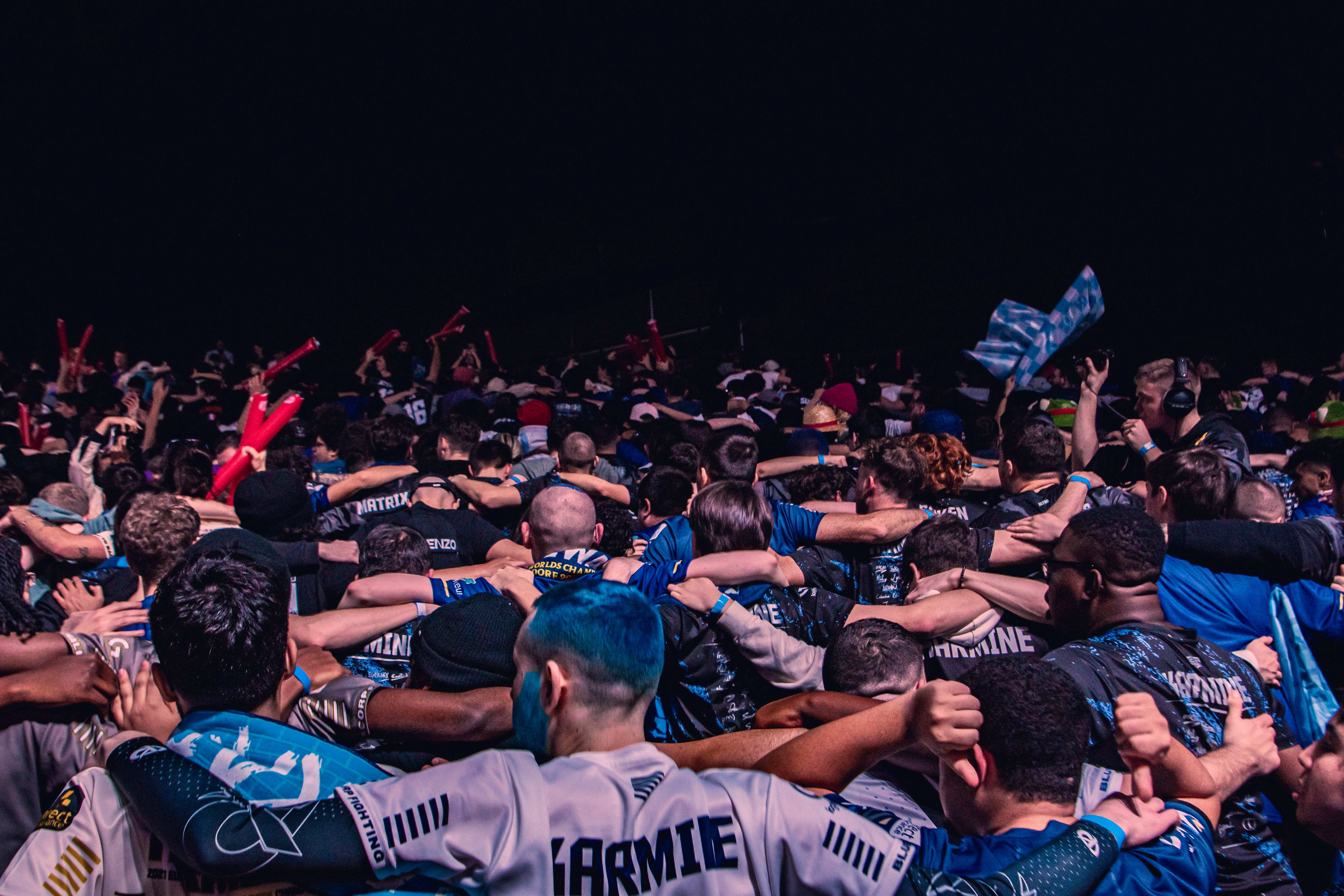 « Je me souviens très bien de ce moment, c’était au début du BO (meilleur des x parties, ndlr) contre Complexity, gagné 4-3 par la KC. Pour nous c’était très intense, nous étions venus à 500 pour soutenir notre équipe jusqu’en Allemagne, notre plus gros déplacement, et chaque match était éliminatoire. Ici, nous pouvons voir, du dessus, une partie du parcage brandissant les écharpes de l’association en direction de la scène et des joueurs. Une manière de montrer à l’équipe qu’on est là pour la soutenir jusqu’au bout. Aussi, une preuve de la fierté que nous avons à porter nos couleurs, nous serons toujours là pour défendre notre blason. »