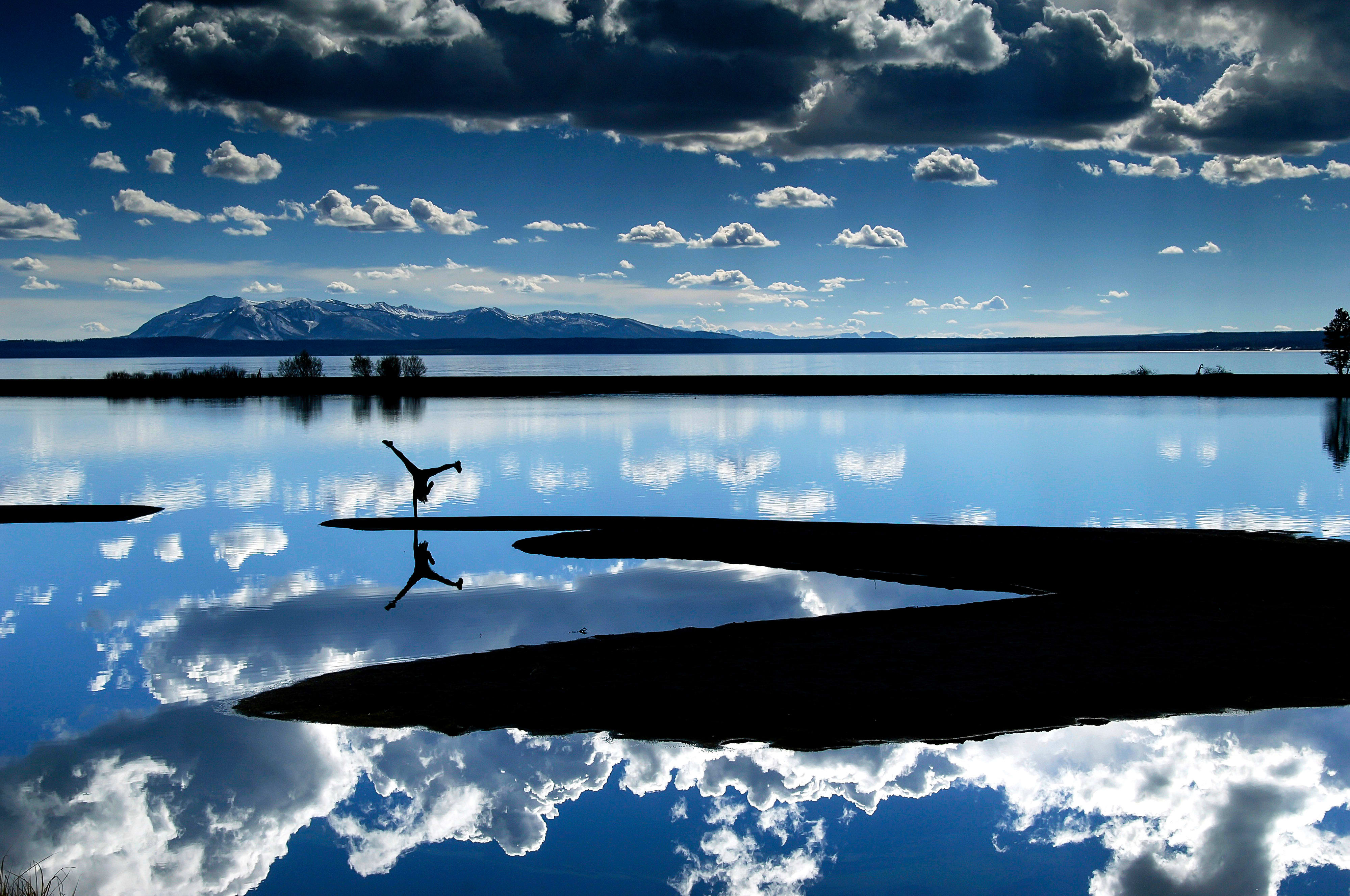 « Voilà un magnifique panorama au parc national de Yellowstone – du moins pour la majorité d’entre nous – mais pour Tara, c’est un terrain de jeu. Dès notre arrivée, elle a spontanément fait une roue sur une main. Une manière de rappeler que même les endroits les plus insolites peuvent être sublimés par l’imagination. »