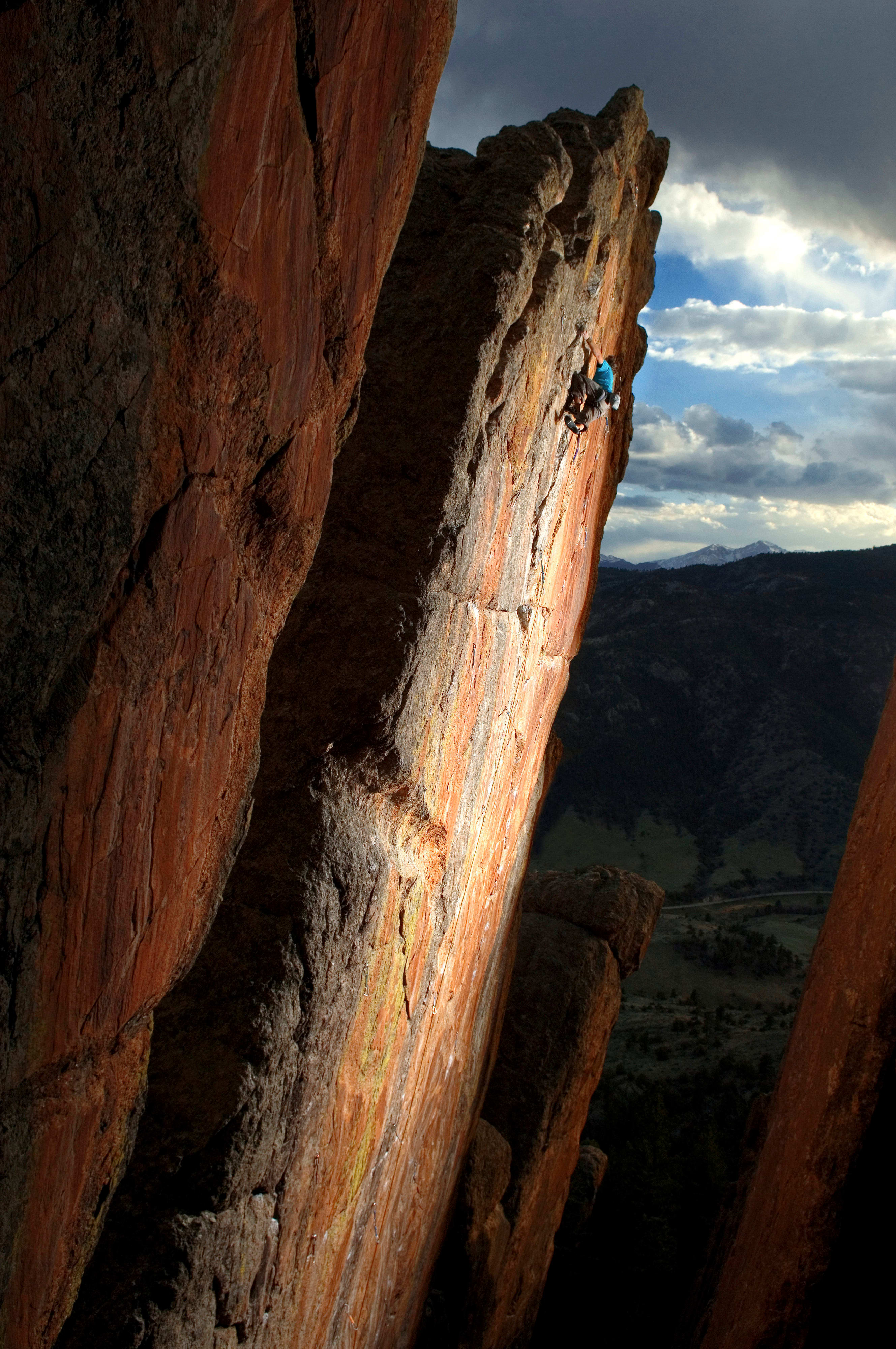 « Il suffit parfois d’un rayon de lumière pour donner à une voie d’escalade un tout autre aspect. Comme un coup de projecteur : à Estes Park, le Grand Ol’ Opry s’illumine au moment même où Jonathan escalade cette voie en granit irrégulier et légèrement en surplomb — un véritable tour de force. »