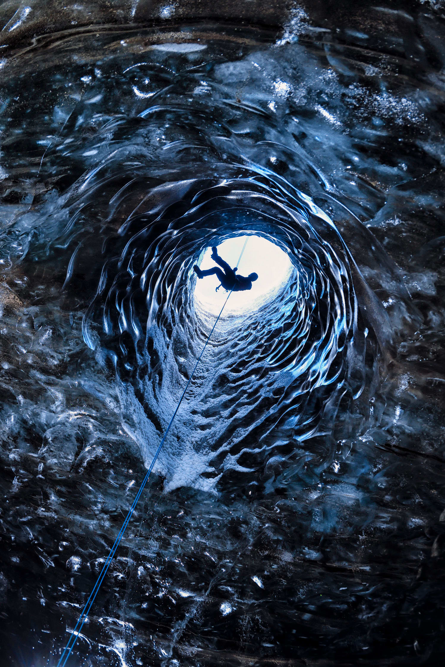« Vous vous représentez l’Islande comme une île vivante et enchantée ? Eh bien, vous avez raison. Les grimpeurs professionnels en quête de sensations fortes visitent cette grotte de glace. Ici, Erik se lance dans le grand bleu pour une excursion d’une journée. »