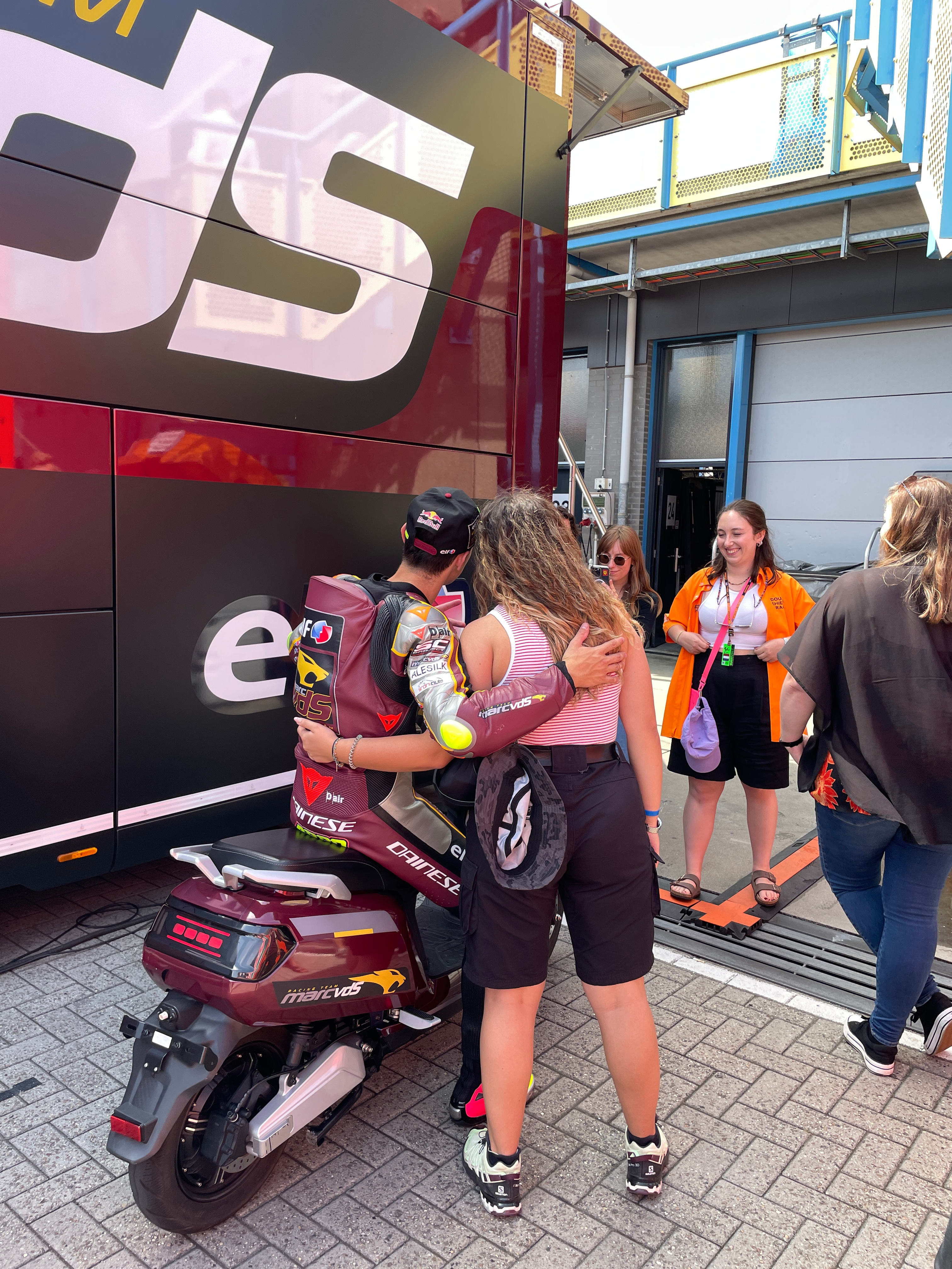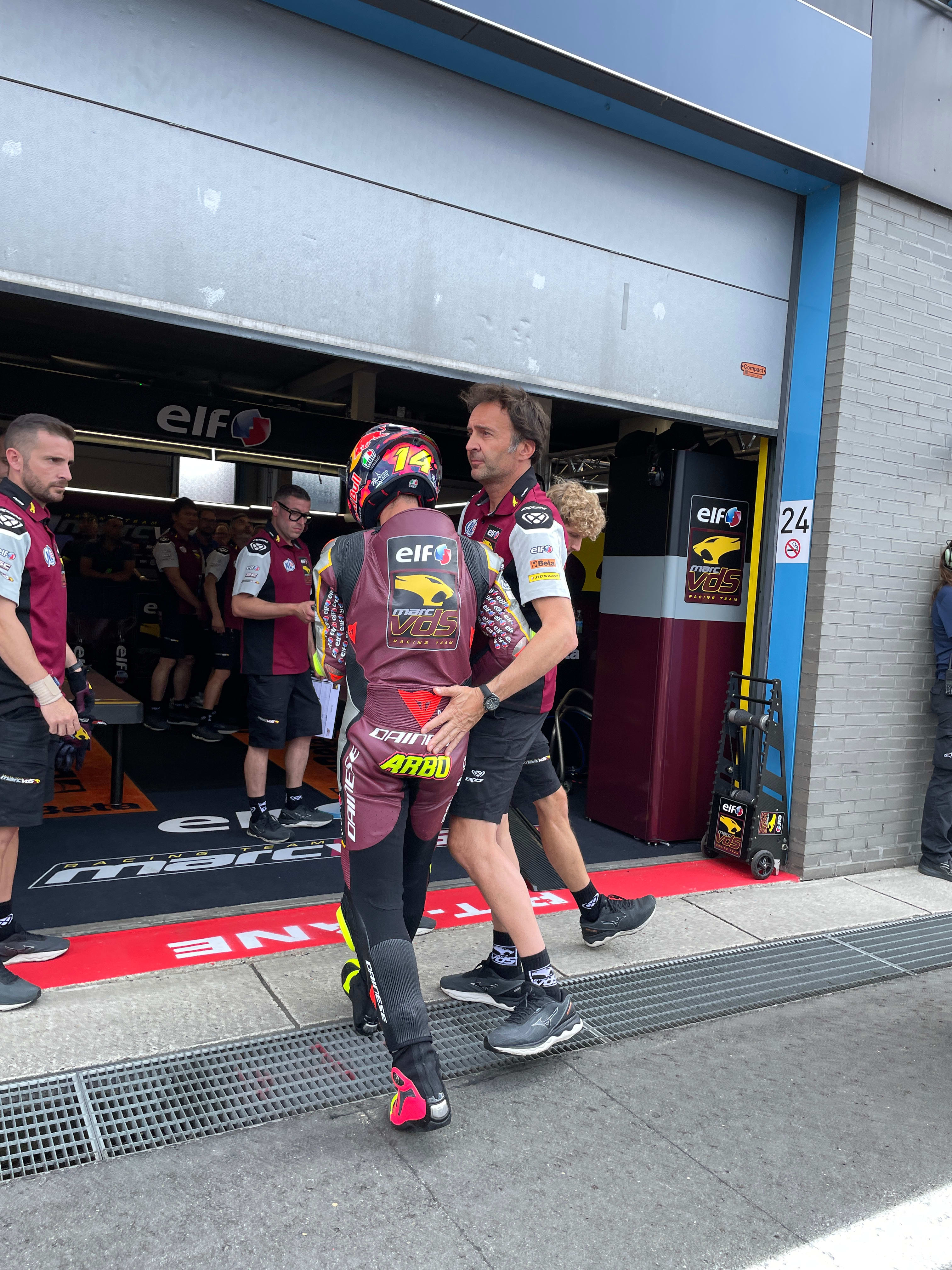 Le week-end d'Assen ne s'est pas bien passé pour Arbolino vendredi et samedi. Il est rapide dans plusieurs sections du circuit, mais l'une d'entre elles lui pose particulièrement problème. "Le samedi c'est toujours un peu compliqué. C'est le dimanche qui compte", explique l'un de ses mécaniciens. Son chef d'équipe, Lucio Nicastro, l'attend dans la voie des stands et le serre dans ses bras lorsqu'il descend de la moto. Tous les pilotes et chefs d'équipe n'ont pas une relation aussi forte.