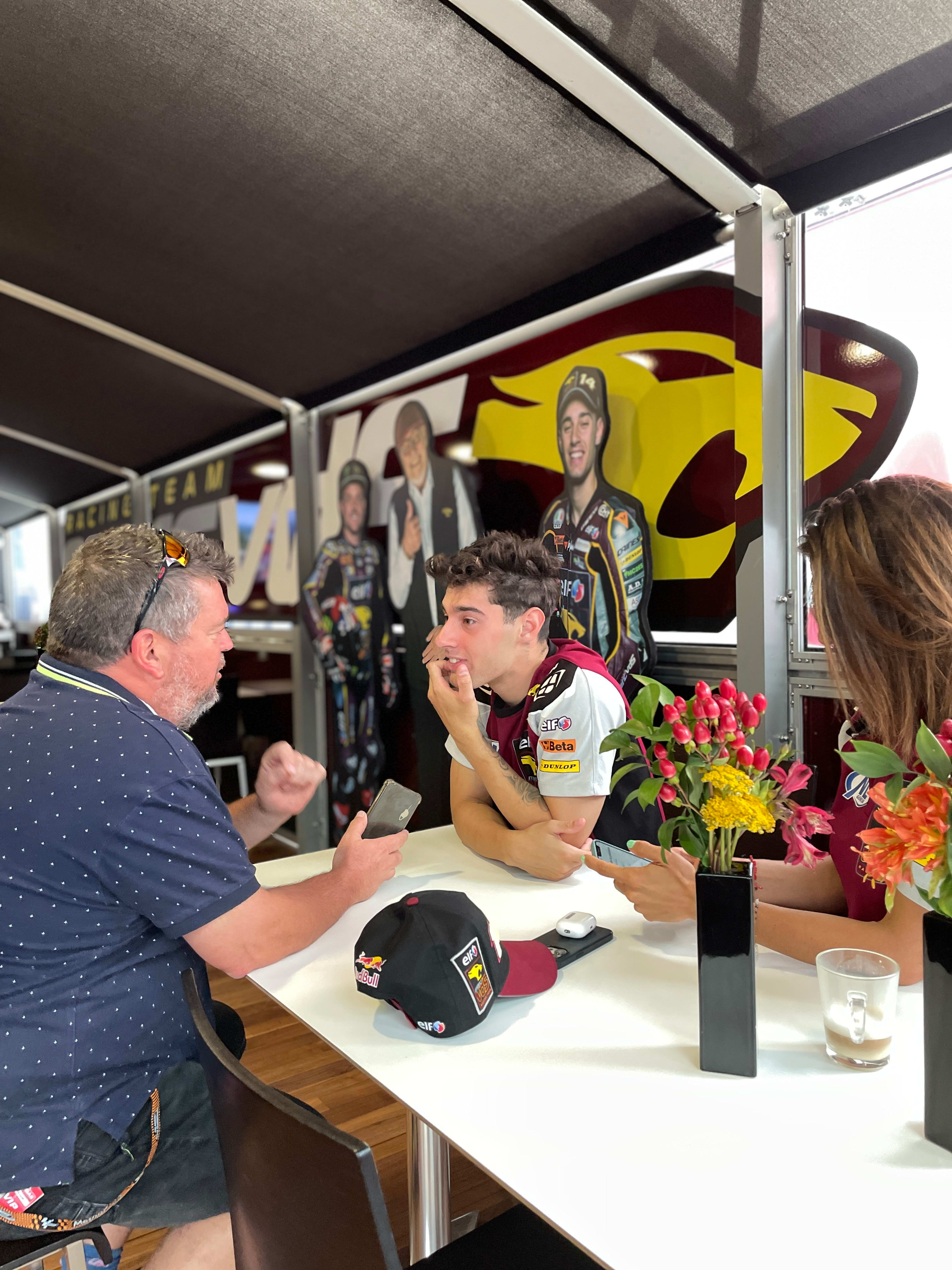 Parmi eux : Angelo Tacca, un homme de son village qui a "vu le potentiel" et a fourni des fonds supplémentaires aux Arbolino jusqu'à ce que Tony atteigne le Championnat du monde Moto3™. Mais aussi son manager Carlo Pernat, figure légendaire du paddock MotoGP™, qui a pris Arbolino sous son aile en 2019 et qui lui a dit qu'il serait son dernier pilote à gérer avant de prendre sa retraite.