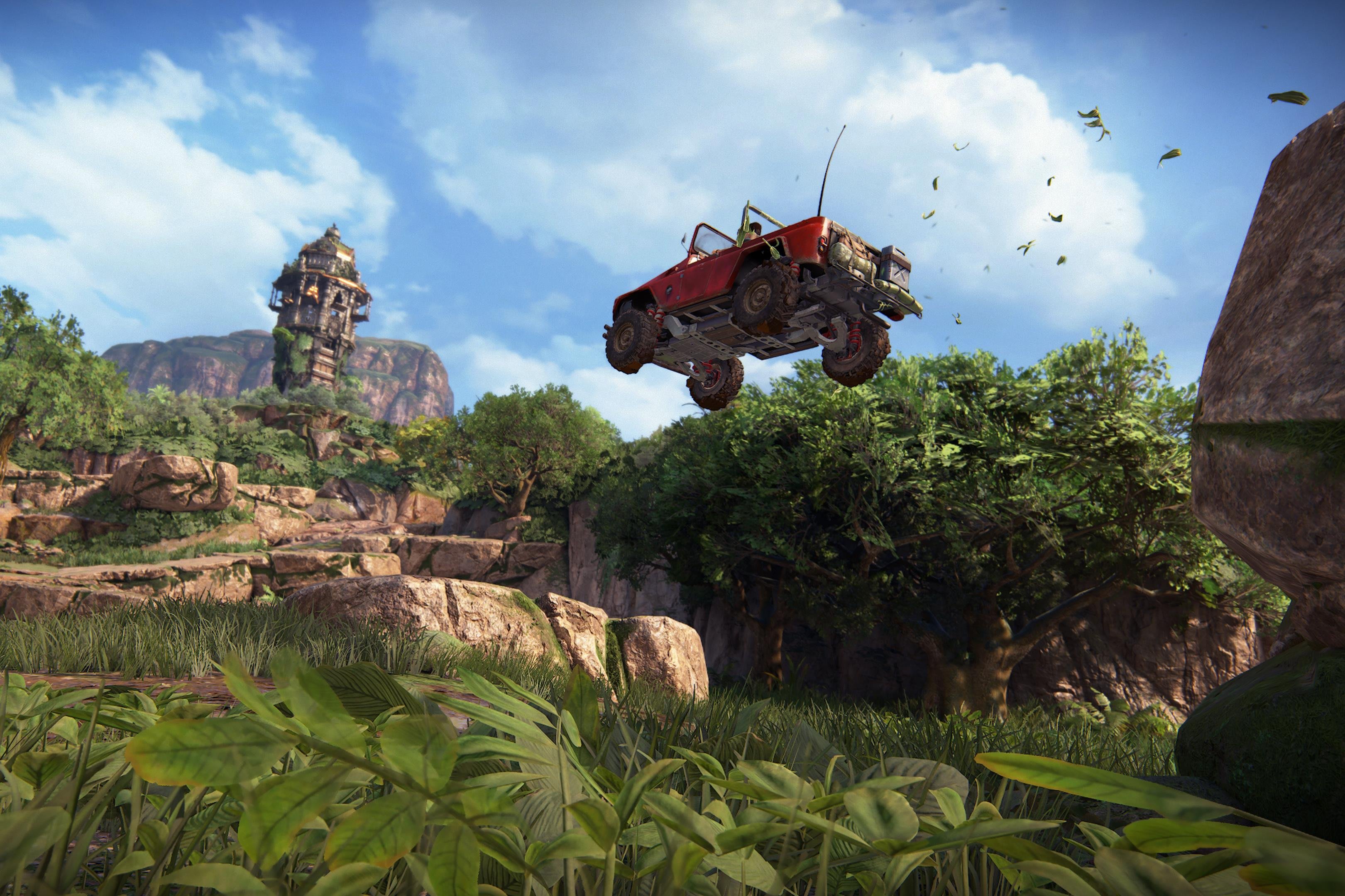 Mais ce n’est pas le cas cette fois. Escayg insiste sur le choix laissé au joueur, et il y croit. Lors de notre test, Chloé et Nadine ont atterri dans la plus grande zone de l’histoire du jeu selon le studio. Et ça semble vraiment être le cas. C’est une série de vallées profondes dans la jungle indienne, qui impressionne à nouveau sur PS4 Pro. Le niveau est une série de forts, de puzzles, de tours et de cavernes que l’on peut explorer à son propre rythme, et dans n’importe quel ordre. On était même loin d’avoir terminé la zone après notre heure de jeu. On ne pouvait pas en dire autant dans tous les autres jeux Uncharted précédents.