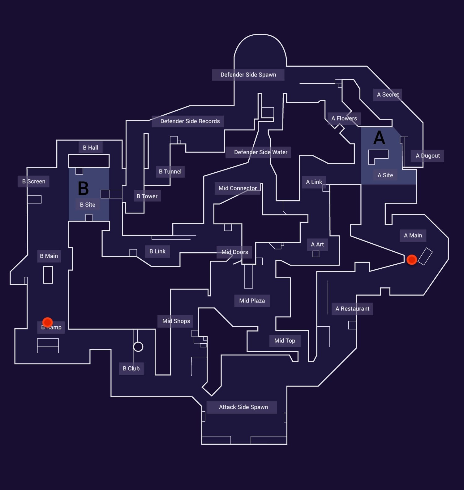 Sur Pearl, le site A est définitivement le plus facile à prendre pour les attaquants. Sachant cela, les défenseurs doivent investir plus de capacités et envoyer plus d’agents sur ce site, car il y a plus de chances que les attaquants y aillent. Pour réussir à aller jusqu’au bout, ces derniers doivent couvrir au moins trois angles différents en entrant sur le site et en plantant le Spike.