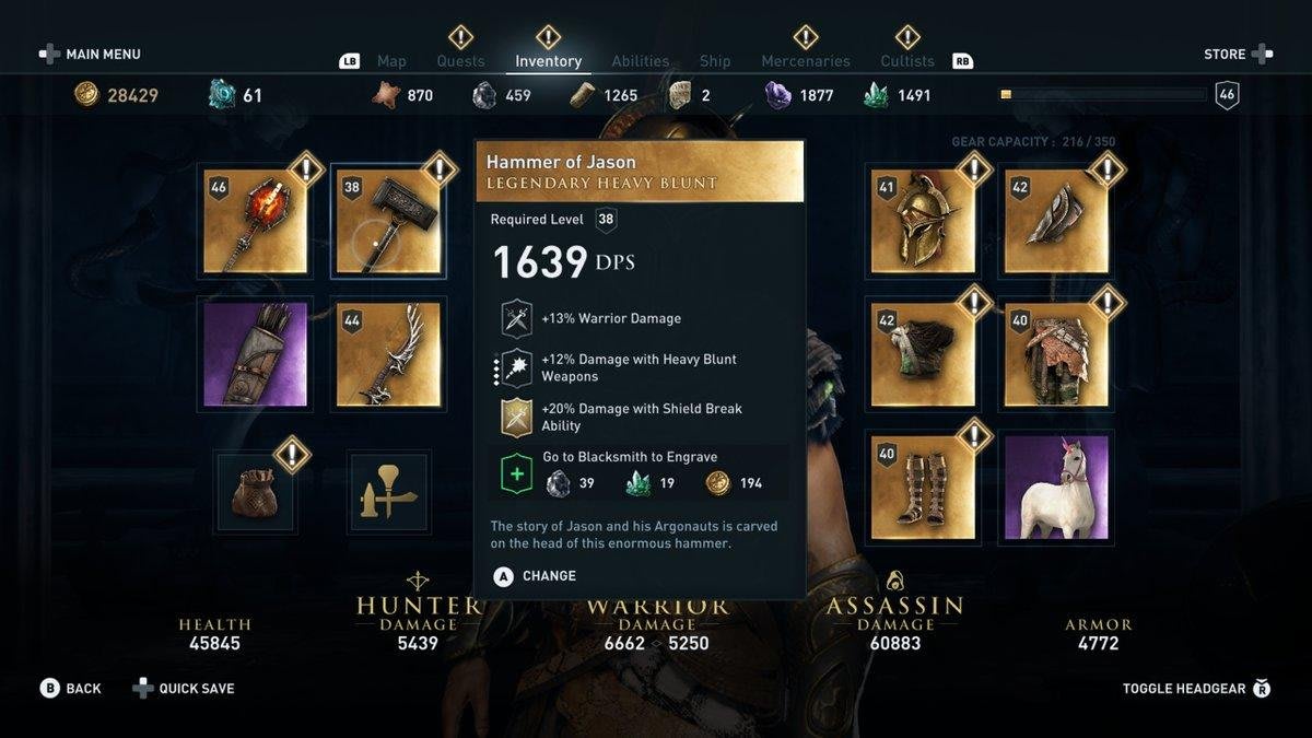The Hammer of Jason is found in a legendary chest on the bottom floor of a building in Mycenae fort in Korinthia. Not only is it fun to wield, given its laughably large size in comparison to your character, but it’s fantastic for using alongside the shield break perk, as it deals 20% more damage.