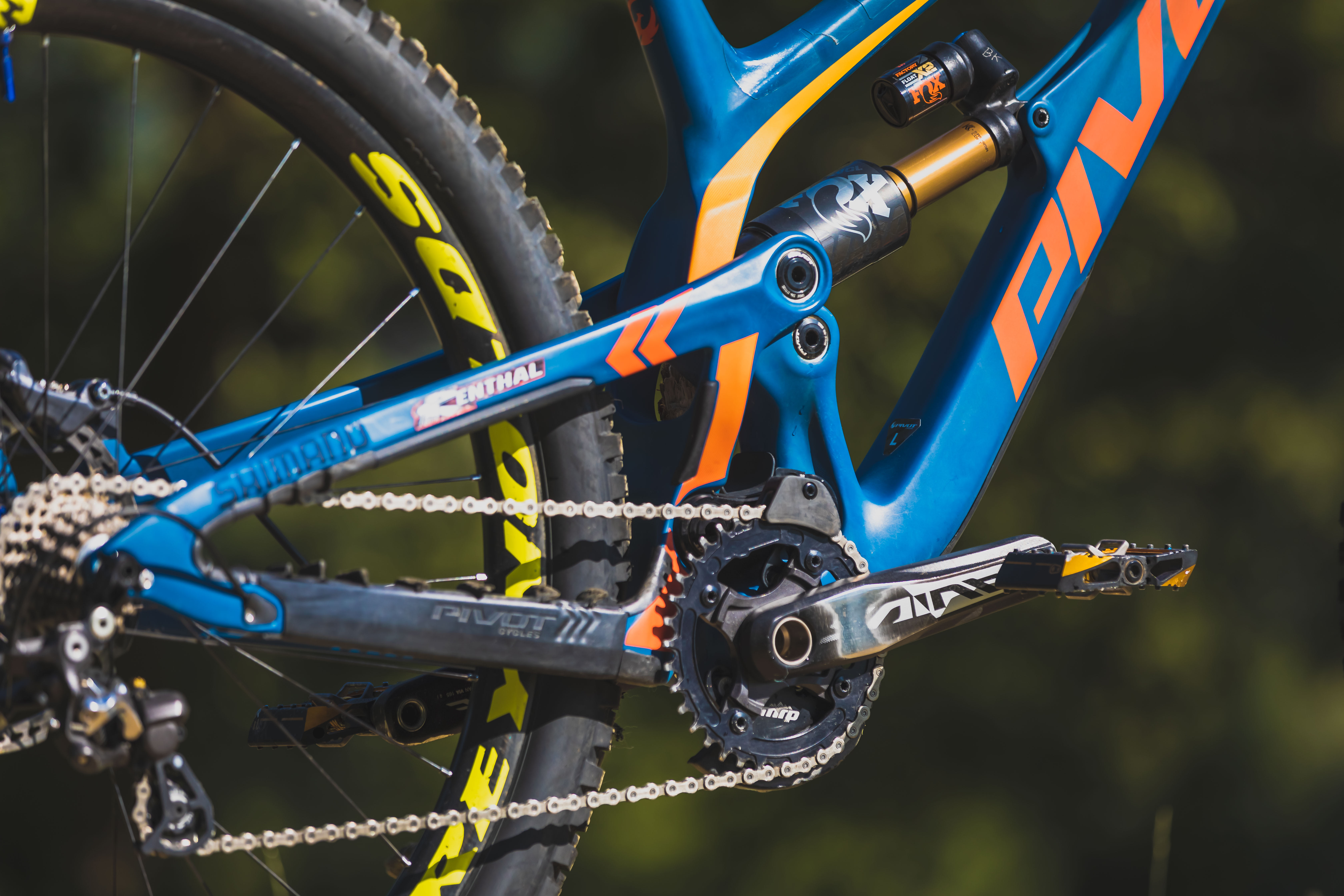 And one thing that seems to be as consistent as Bernard in Wales is his Pivot Phoenix 29. One of the lightest bikes in the paddocks, everything bar the handlebars is carbon fibre, while there are a smattering of Bernard Kerr signature products that make it one of the most expensive, too.