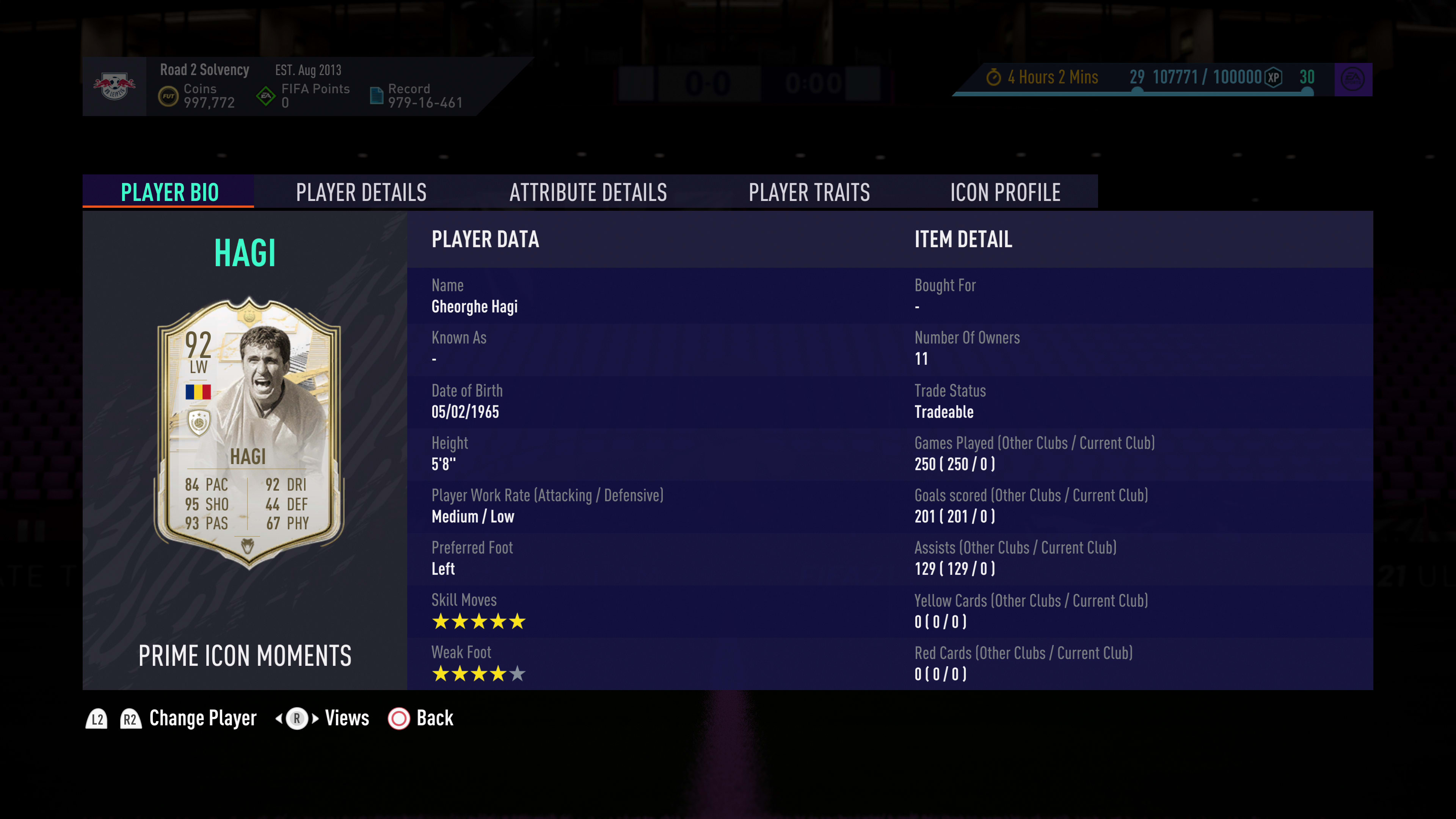 Gheorghe Hagi: 92-rated (Moments, LM), Romania, 280,000 coins