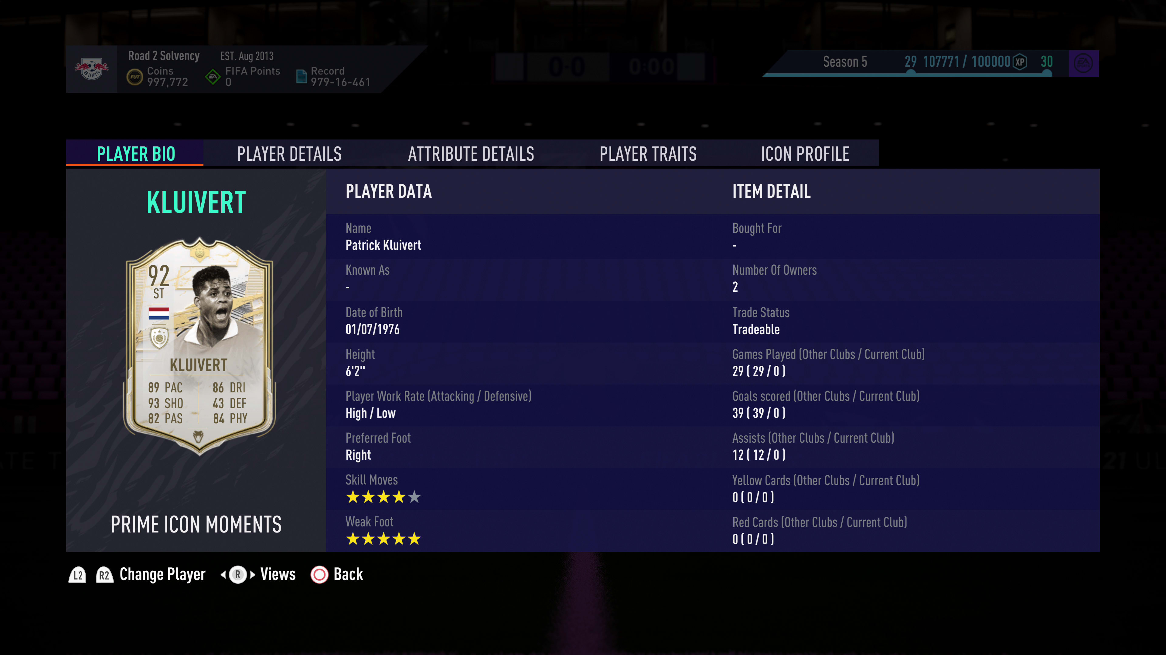 Patrick Kluivert: 92-rated (Moments, ST), Netherlands, 315,000 coins