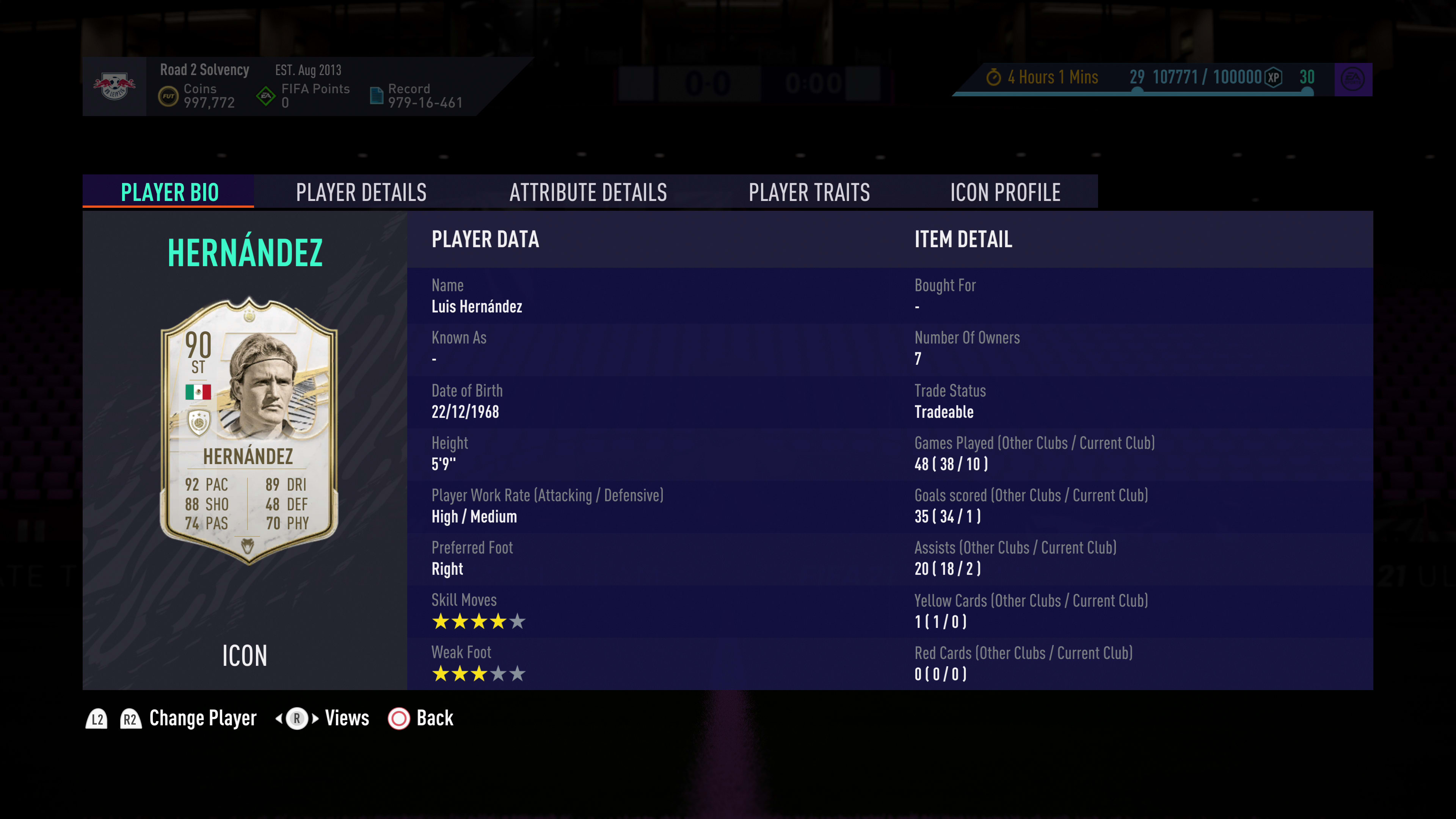 Luis Hernandez: 90-rated (Prime, ST), Mexico, 245,000 coins
