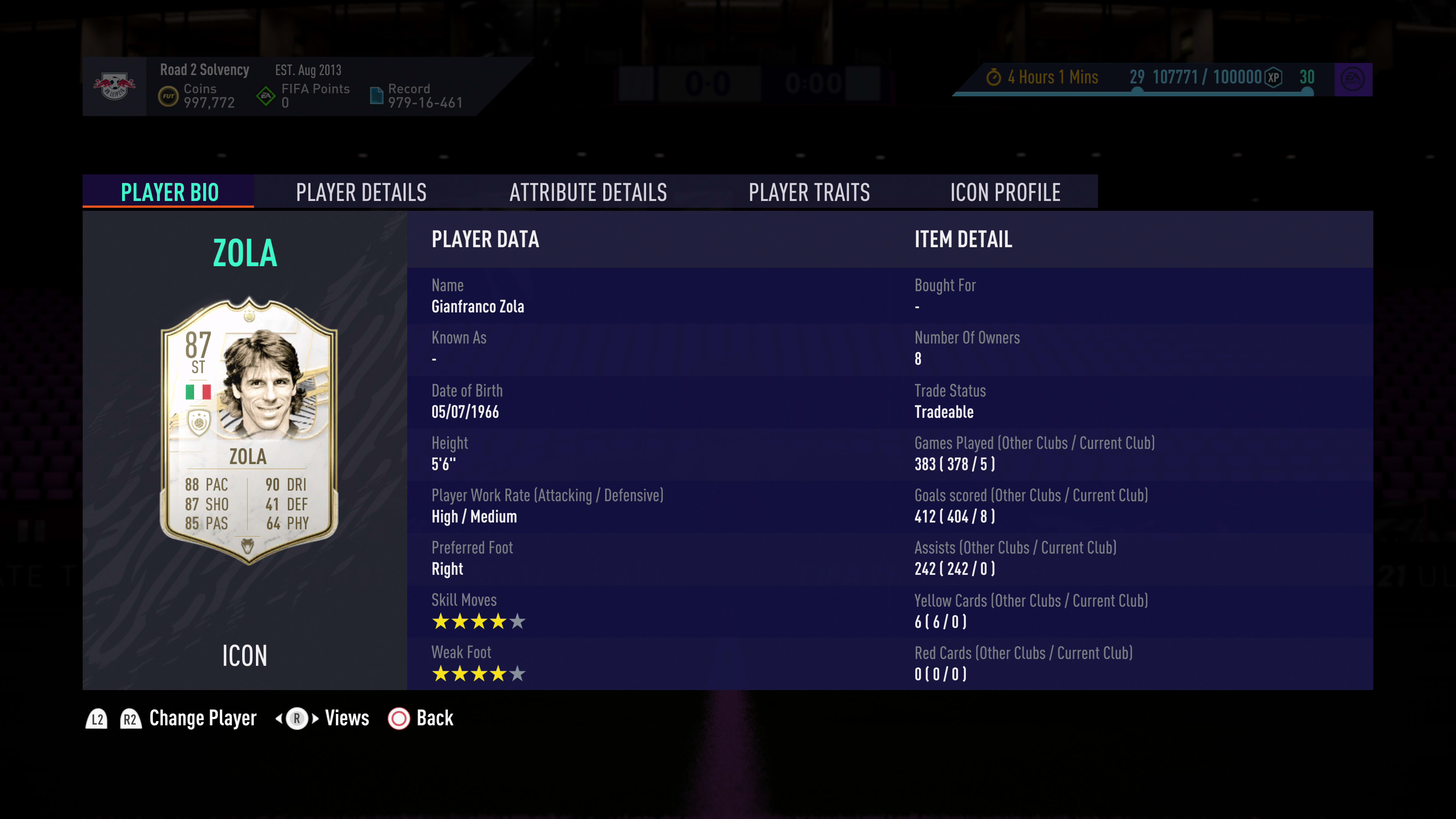 So that's one thing that stands in Icons' favour. Another is that they often have useful traits. These were legendary players in their day, and while their stats might not be as competitive as they once were due to the influx of special promo cards, they were given special traits that can make them surprisingly useful in-game. Take Liverpool legend Ian Rush, for example. Rush has the Outside Foot Shot, Finesse Shot and Power Header traits, meaning that he will be able to produce the right shot animation in a lot of circumstances to do real damage to a stumbling defence.