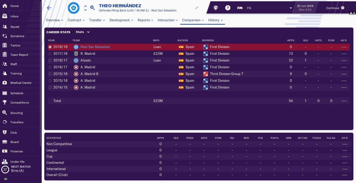 The spotlight was placed firmly on 21-year-old Theo Hernández following his high-profile switch to Real Madrid in 2017. He’s currently on a season-long loan at fellow La Liga side Real Sociedad, which makes him hard to acquire in-game, but his impressive attributes and outstanding potential make him worth the wait. Hernández is also valued at just under £3m in FM 19, so if you’re lucky, you might snag somewhat of a bargain.