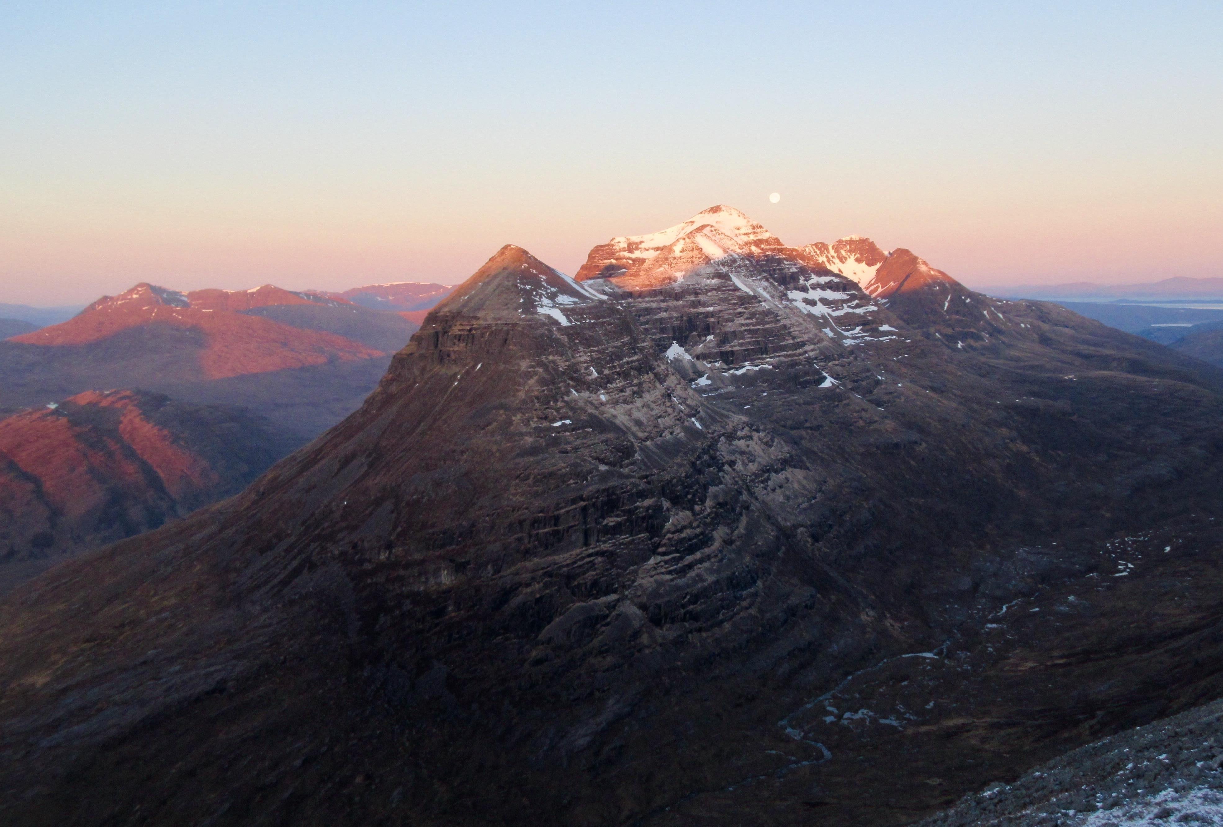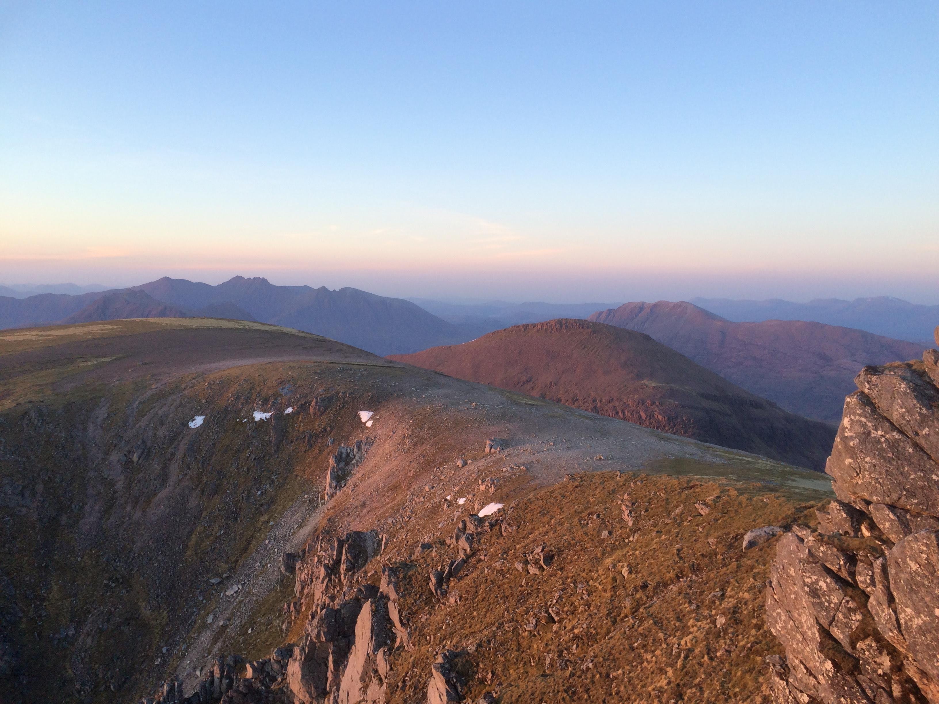 "I have summited this twice at night and it is absolutely fantastic. We went up at midnight in summer and got a sunset when everything became pink. But because of the way it is positioned you also get the sunrise on Liathach where the colours are also spectacular. We went up through Coire Mhic Fhearchair – we lost the moon at first but it came into the corrie. The path is very good and the climb up onto the ridge is fine with an easy drop down from Spidean Coire nan Clach."
