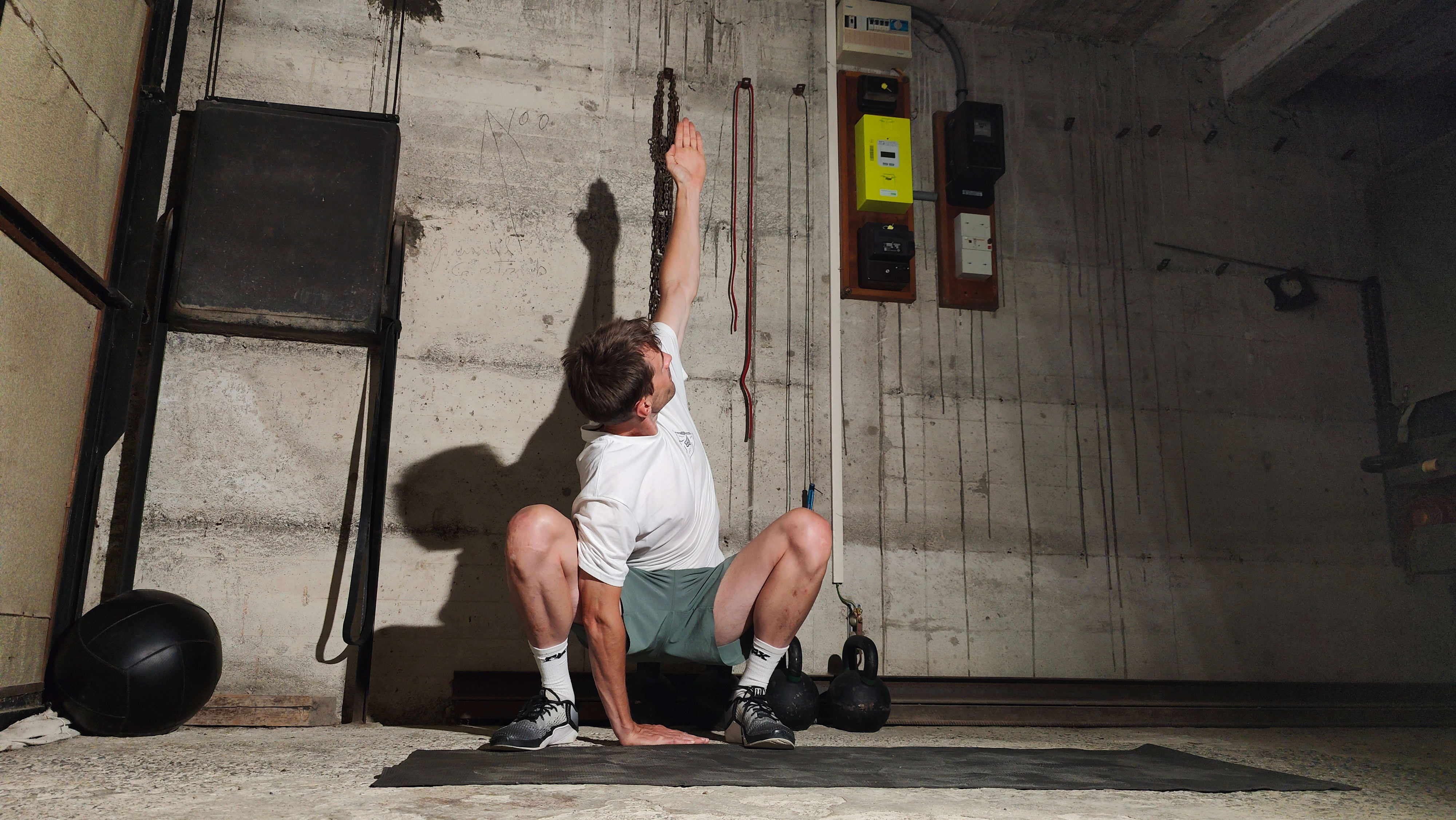 - If the rotate is too challenging, then just aim to actually hold the deep squat position.