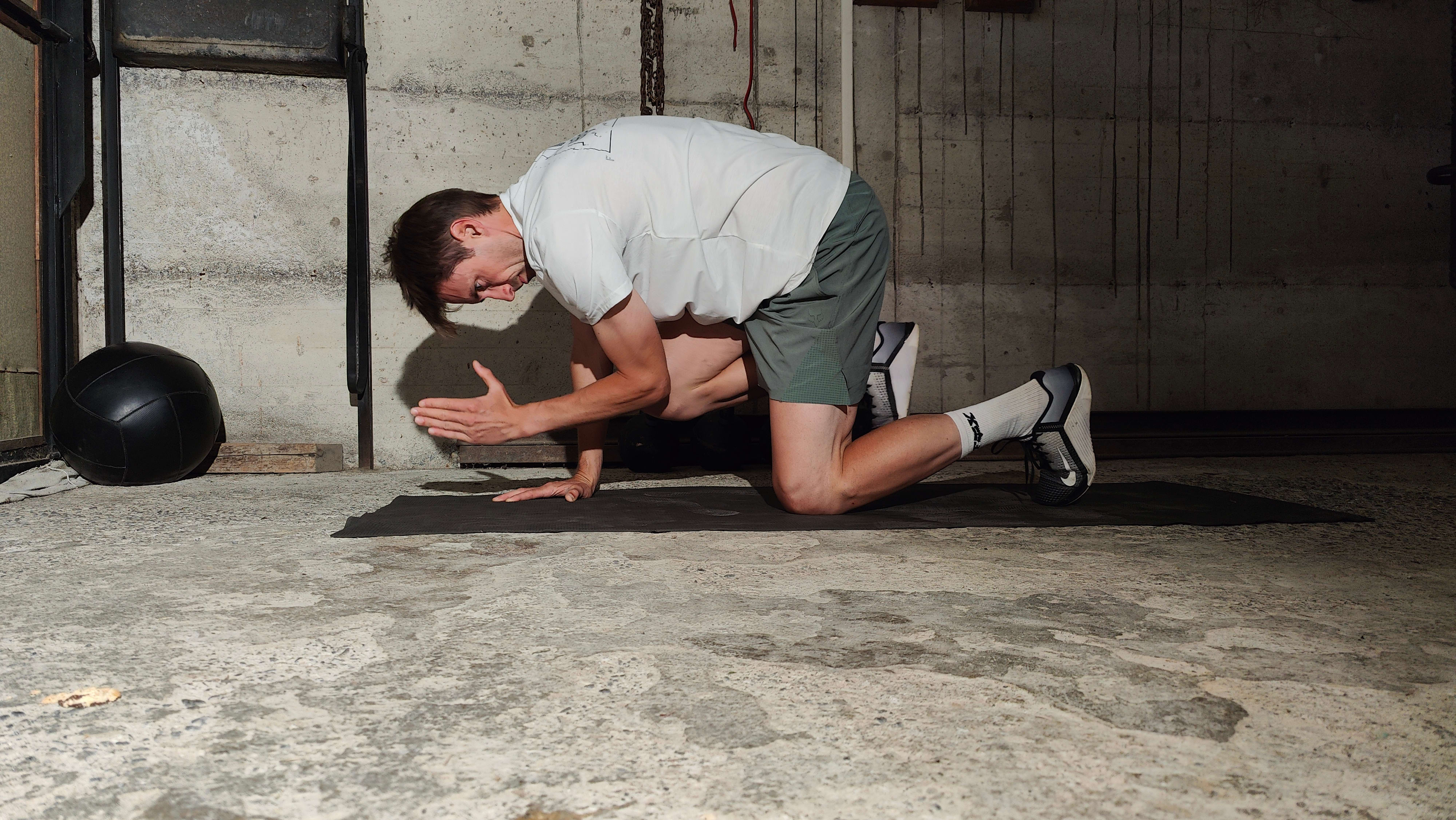 - Get on all fours on the ground with your toes and knees supporting your lower body. Have your palms flat on the ground so your wrists are extended.