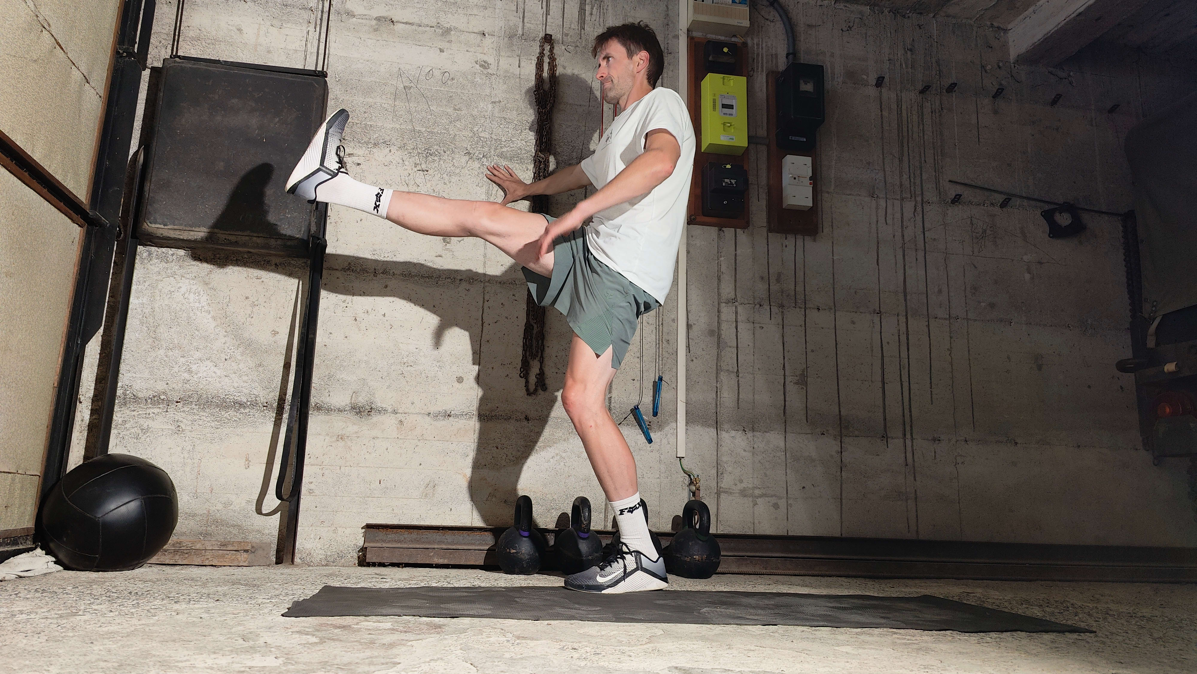 - Increase the size of the movements and try to get the end of your leg well above parallel in front of you (if you can). Really drive it behind you as you get more proficient with it.