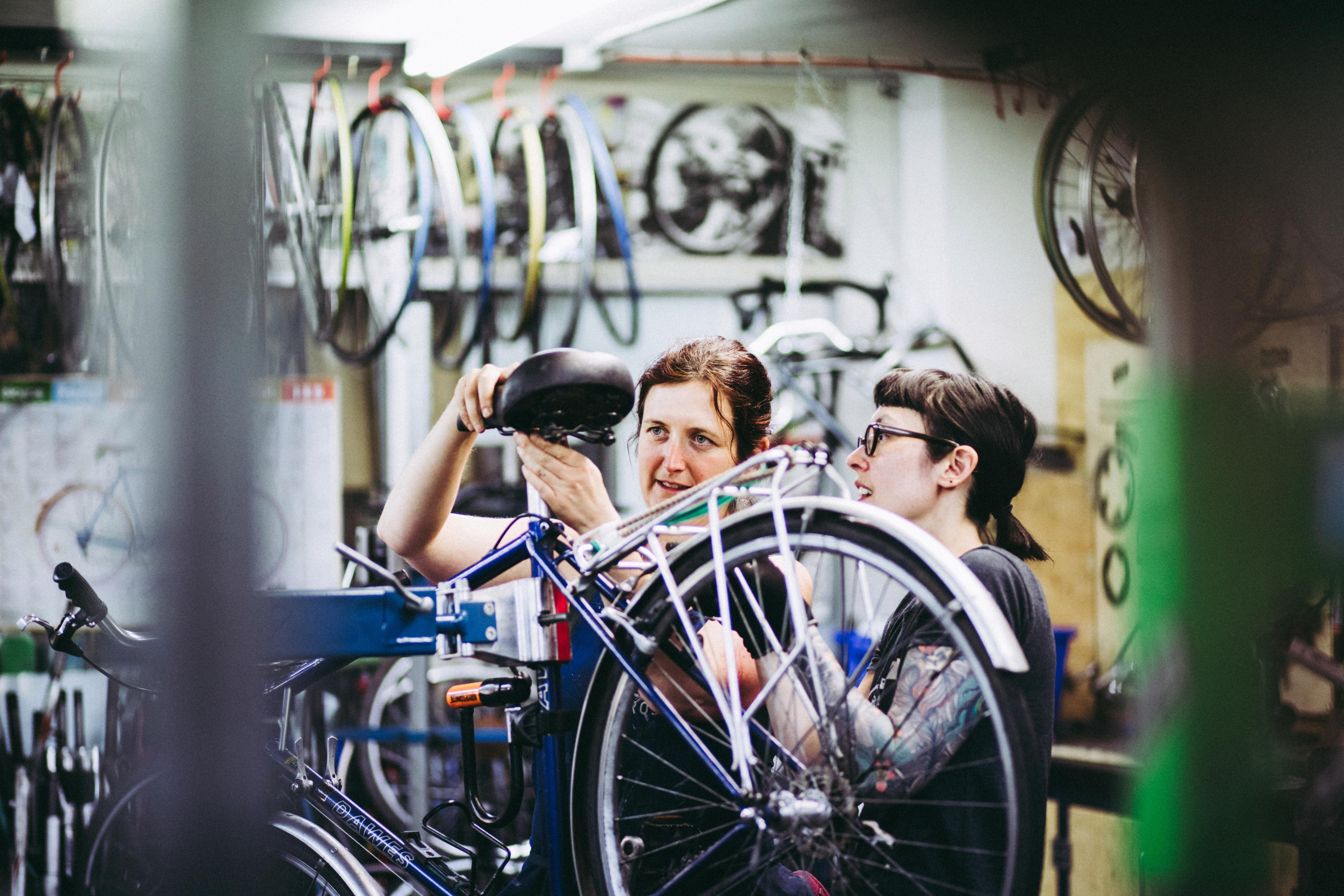 On Mondays in their workshop, the BPP run a Women's Night. It’s an open forum where female bike mechanics come together to share skills and cycling knowledge with women and those who identify as women looking to fix and service their bikes. The concept is based around using knowledge to empower and encourage confidence and independence. As one drop-in, Anna, explains: “I’ve spent a lot of money going to bike shops and then got very disillusioned. I didn’t realise there was other stuff going on. I like the idea of women helping women. It’s nice.”