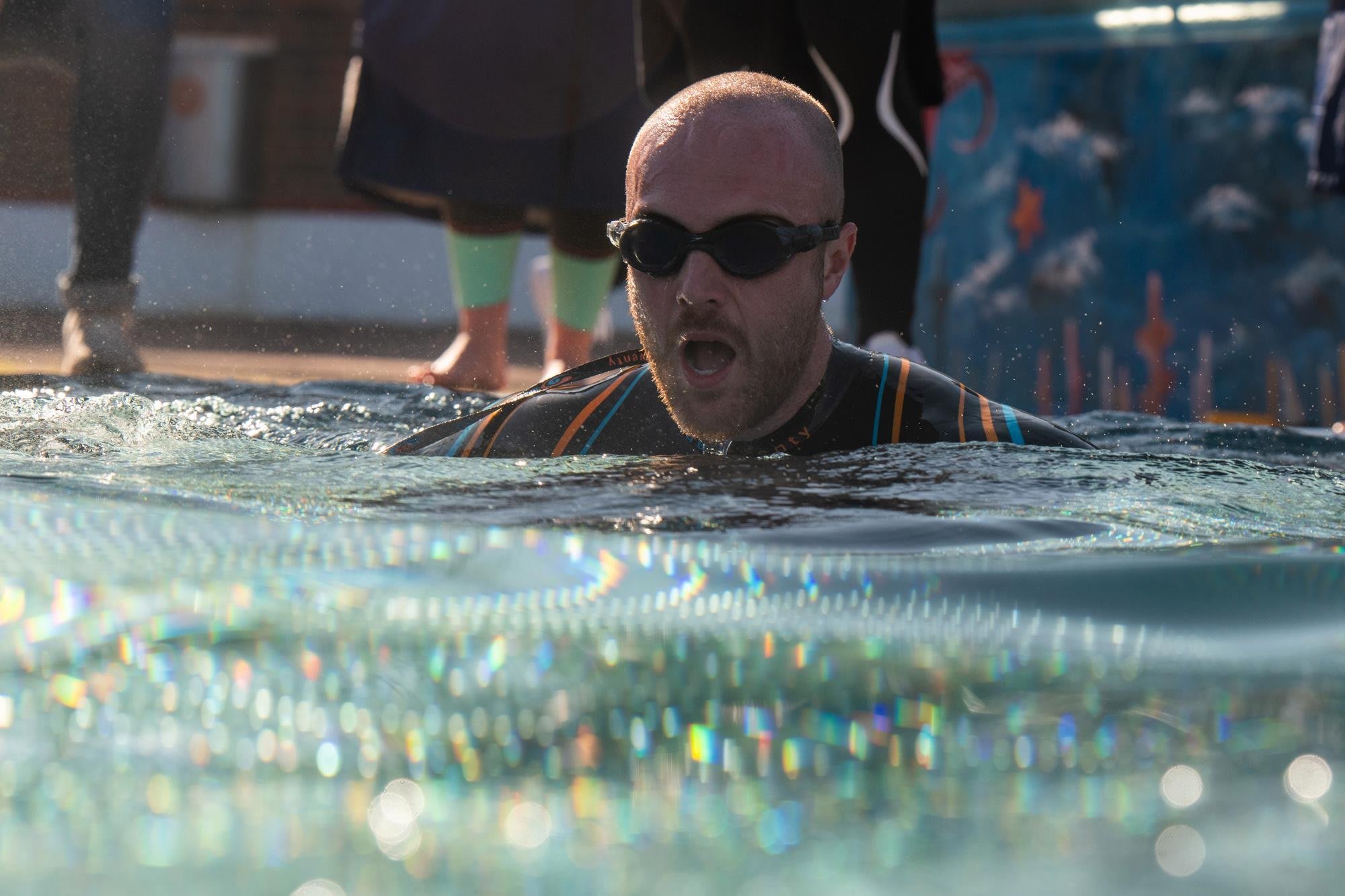 For everyone at the event, the one common theme across the group, regardless of swimming ability, was the initial shock of getting in the water. To combat this we spent two minutes floating in the water and getting used to the cold. "Get your head under!" shouted Ross as he wandered past laughing, his excitement inversely proportional to that of everyone in the water.