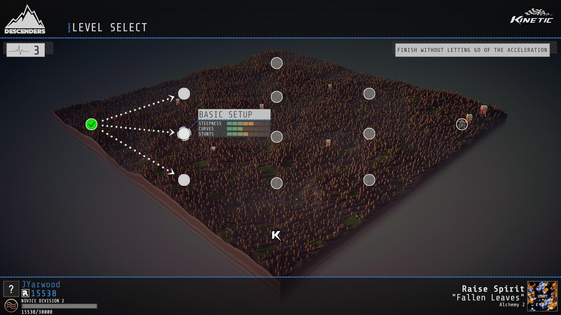 Every time you pick a track to race on, you are given an additional objective. This can include not letting go of the acceleration, doing specific tricks, or staying in the air for a particular length of time. These activities aren’t required to move on to the next race, but they reward you with extra health alongside points towards your overall reputation. Try to complete them whenever possible. It will help make up for any points you lose elsewhere from bailing.
