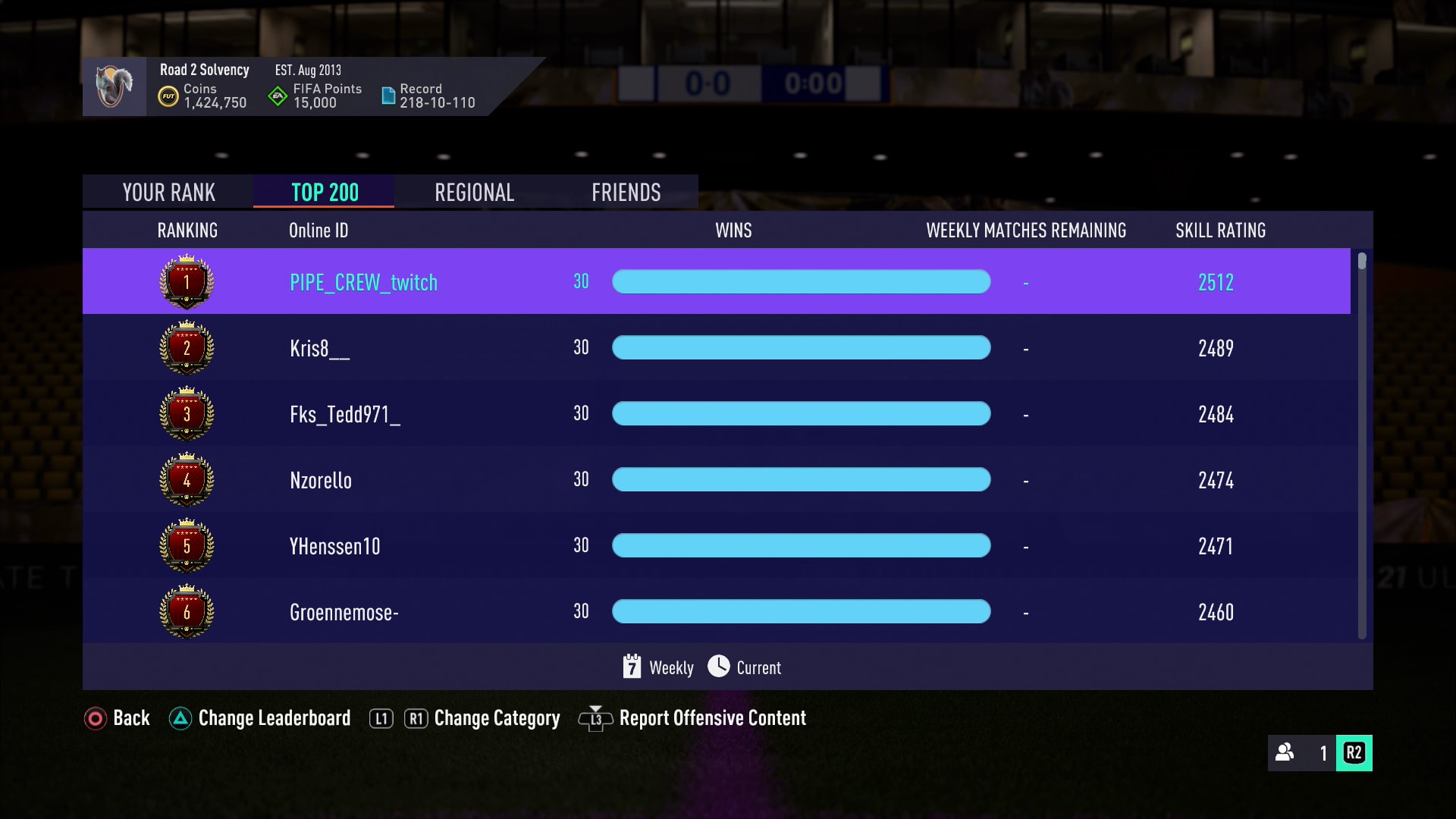 - Top 200 - 30 wins and a high skill rating - Players who finish in the top 200 get more coins and packs, plus an Ultimate TOTW Pack, and Top 75 receive an additional FUT Champions player pick