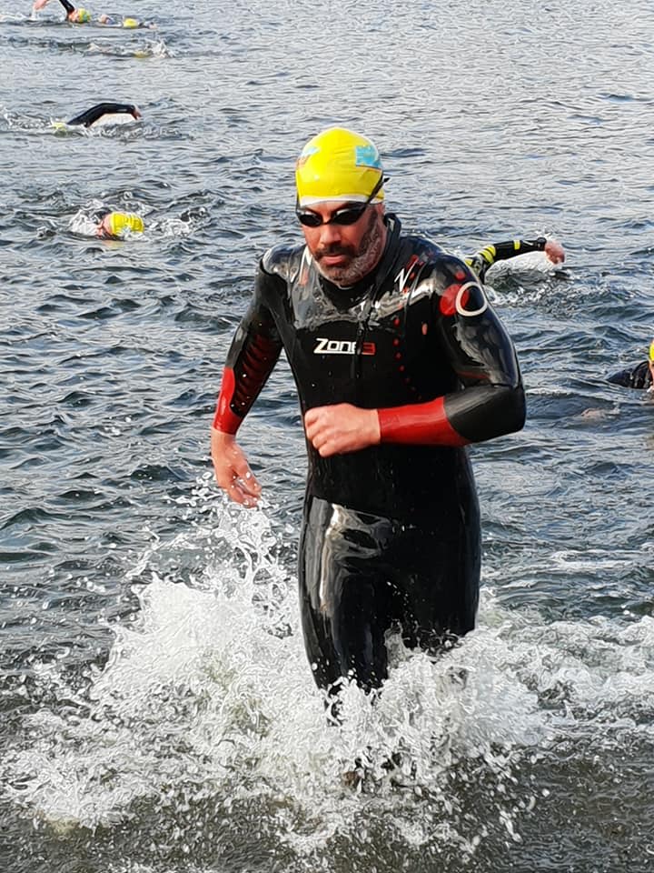 This competitor is still smiling, even after facing water temps of 6-8°C