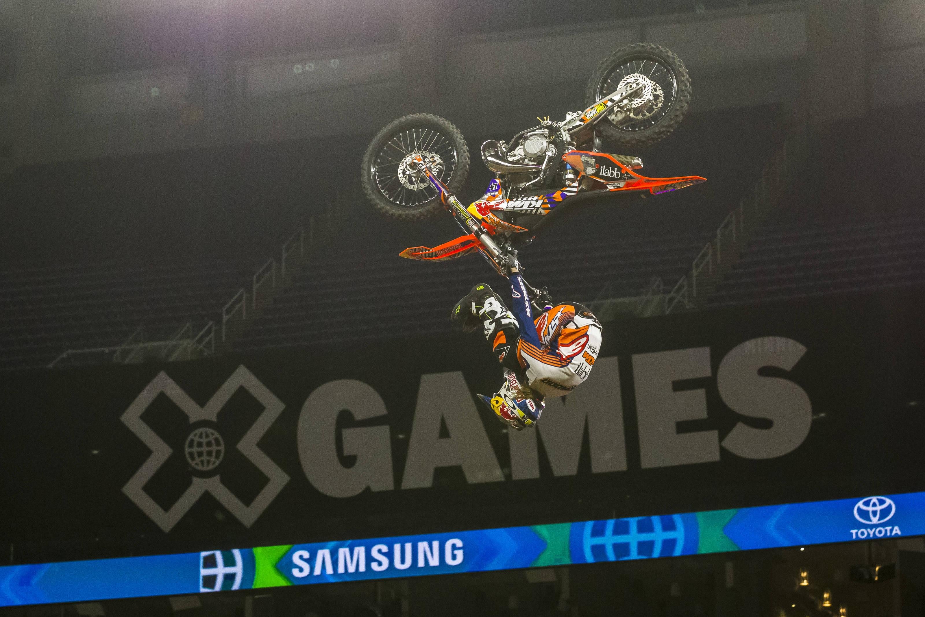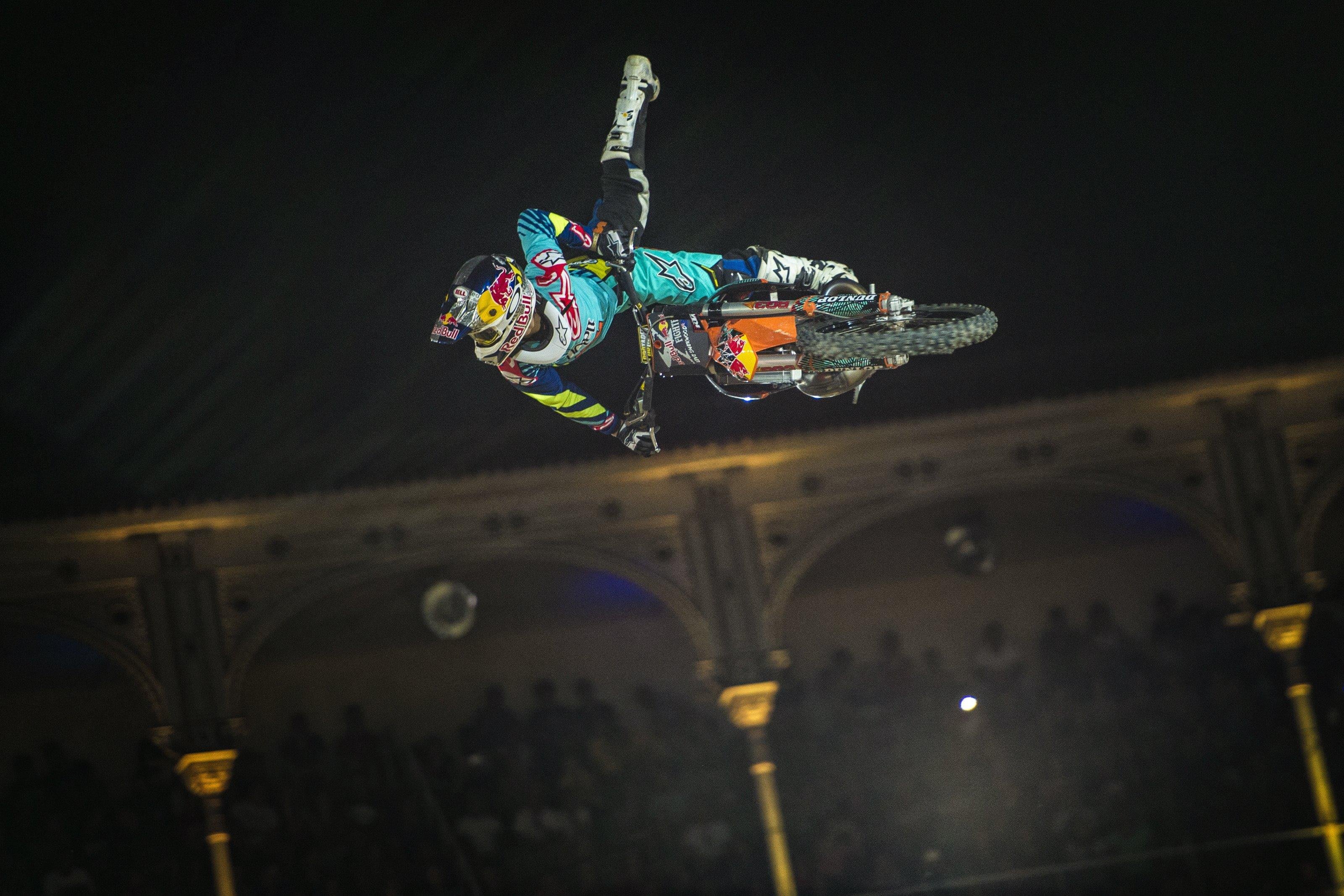 First landed by Travis Pastrana, the Double Backflip was another huge milestone for FMX progression. This high-consequence trick has now been fully mastered by the likes of Josh Sheehan, Tom Pagès and Levi Sherwood to the point where they are all now adding variations to their Double Backflips.