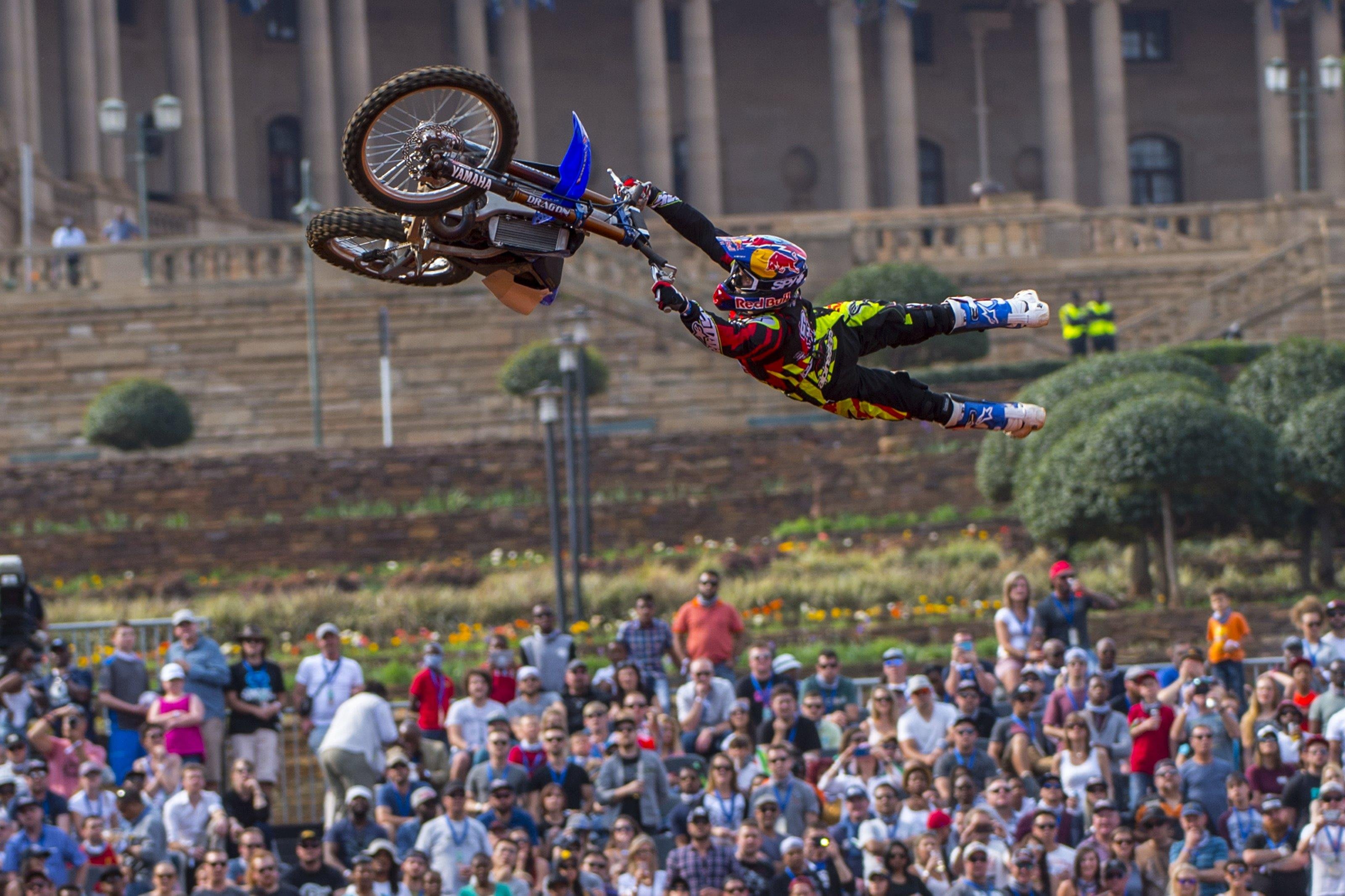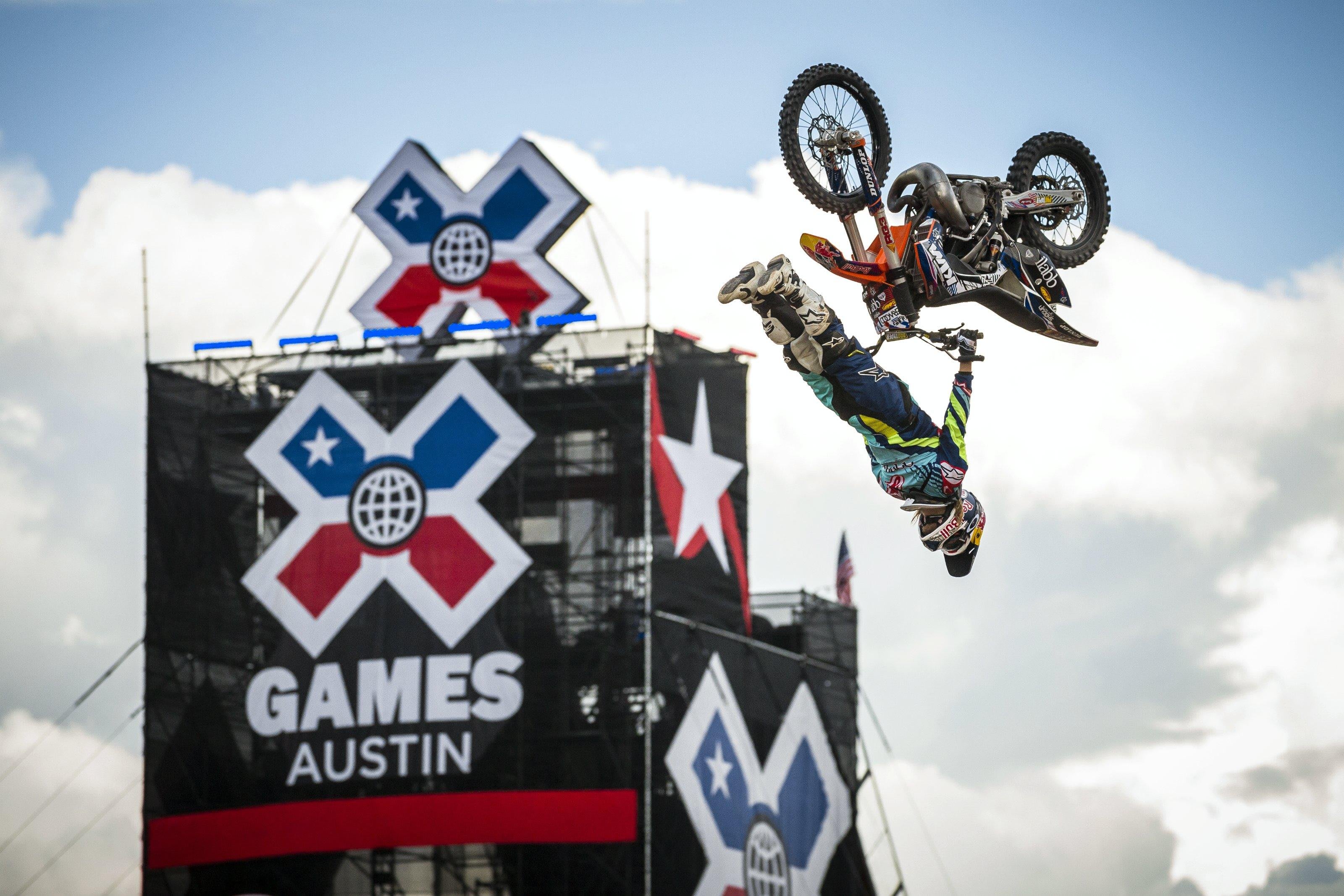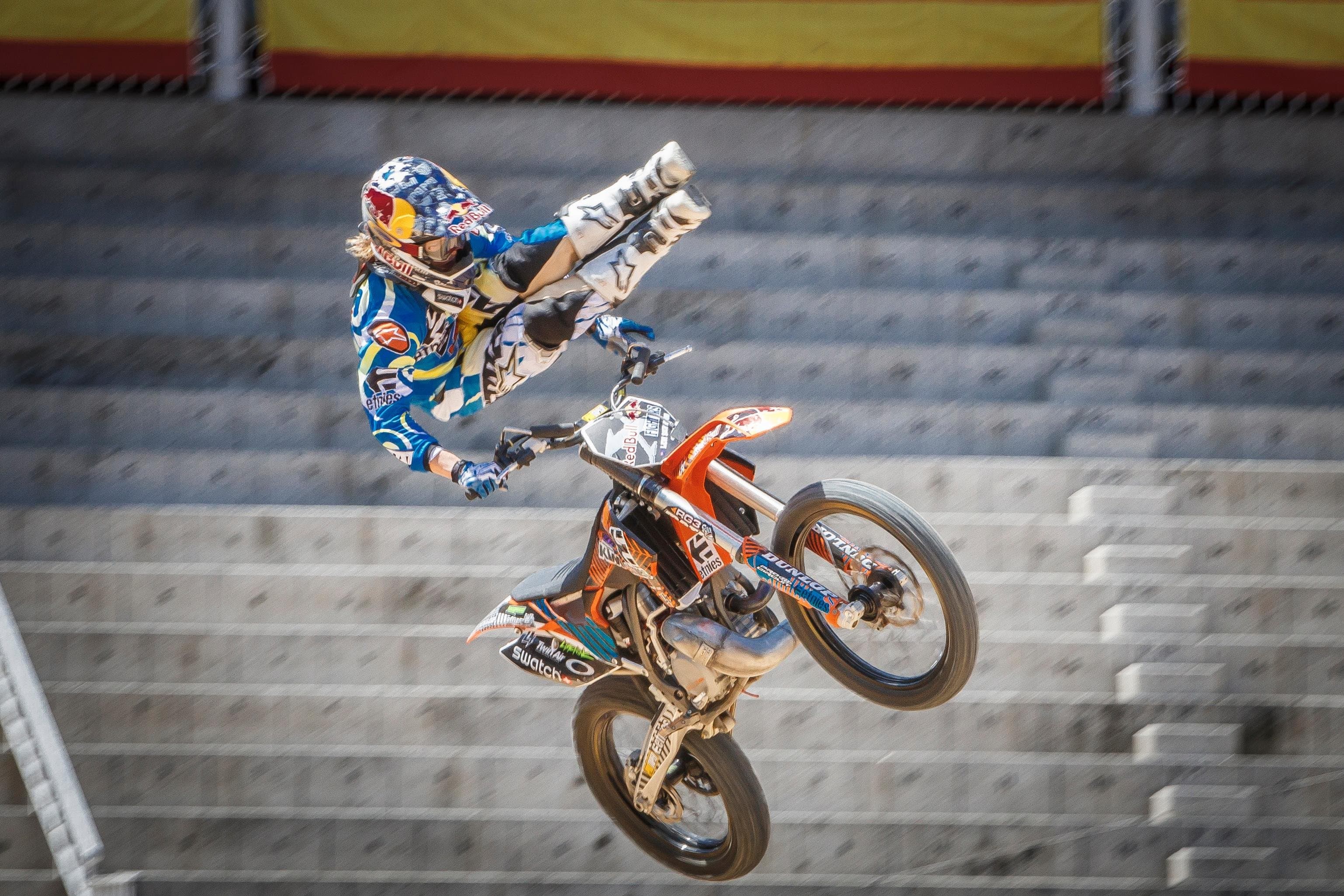 One of the most technical tricks in freestyle motocross. The Special Flip was invented by Special Gregg on a mountain bike and then mastered and brought to FMX by Tom Pagès. The rider leaves the ramp and barrel-roll’s their body above the bike before catching the bike and re-mounting.