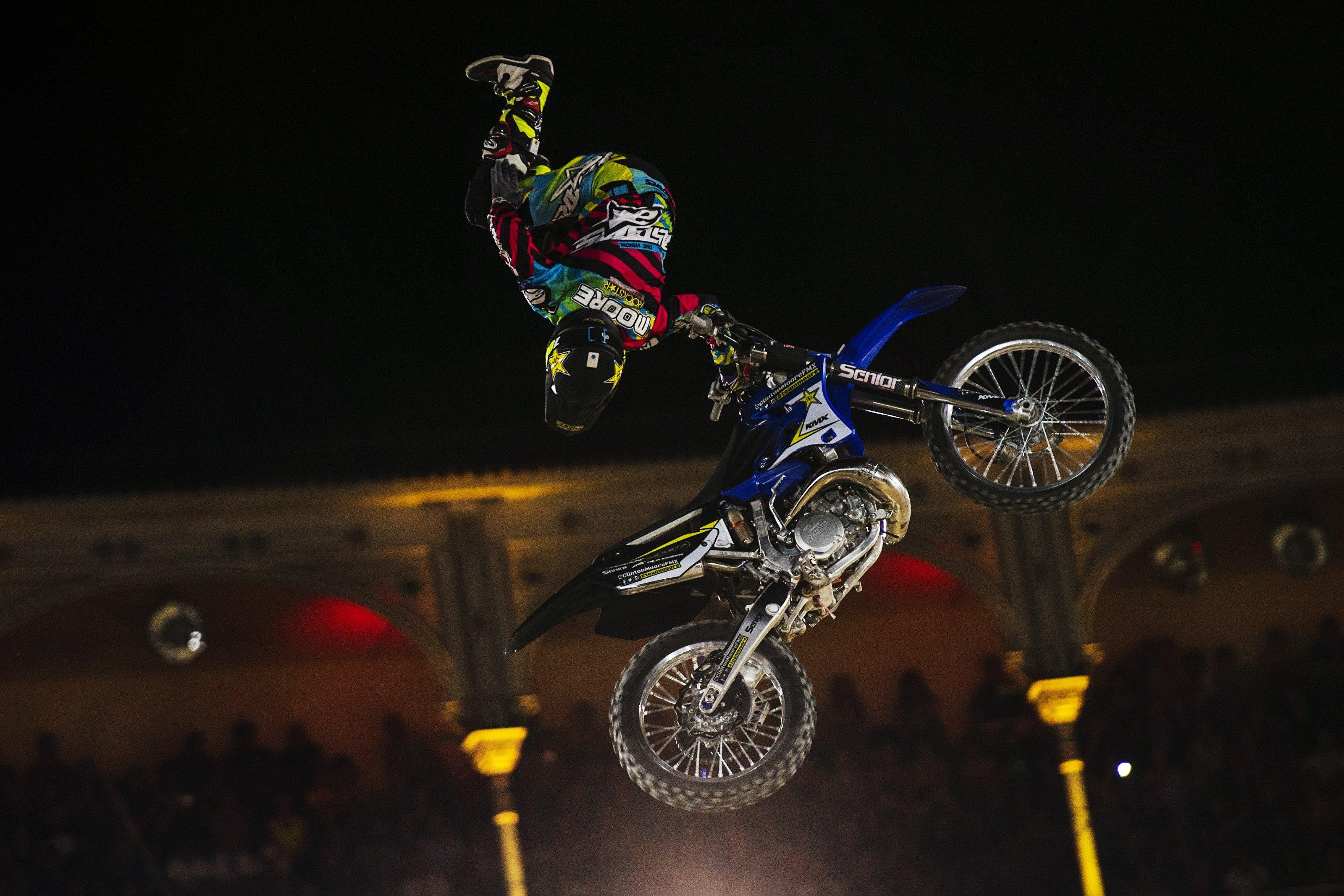 One of the most technical tricks in the history of FMX, the Bundy is Clinton Moore’s signature trick. To do the trick, Clinton basically does a backflip above the front of the bike whilst holding on with one hand. He then has to quickly re-position his hand before landing.