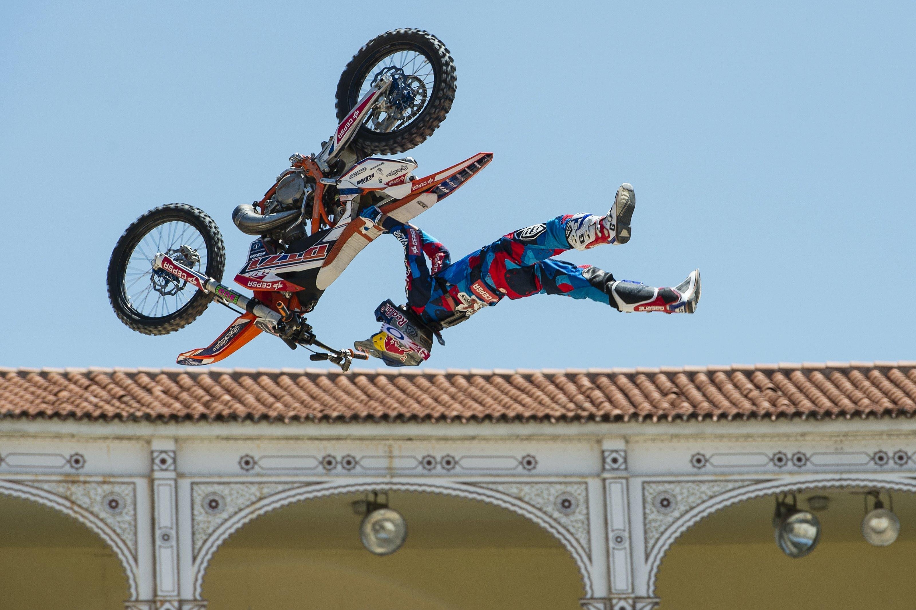 Originally attempted by Kyle Loza, the Bike Flip was, after many years, eventually figured out and landed by Tom Pagès. By using a quarter pipe to do the trick off as opposed to a standard ramp, Pagès was able to conquer the Bike Flip, making his bike do a full rotation next to him in the air as he stays relatively motionless.