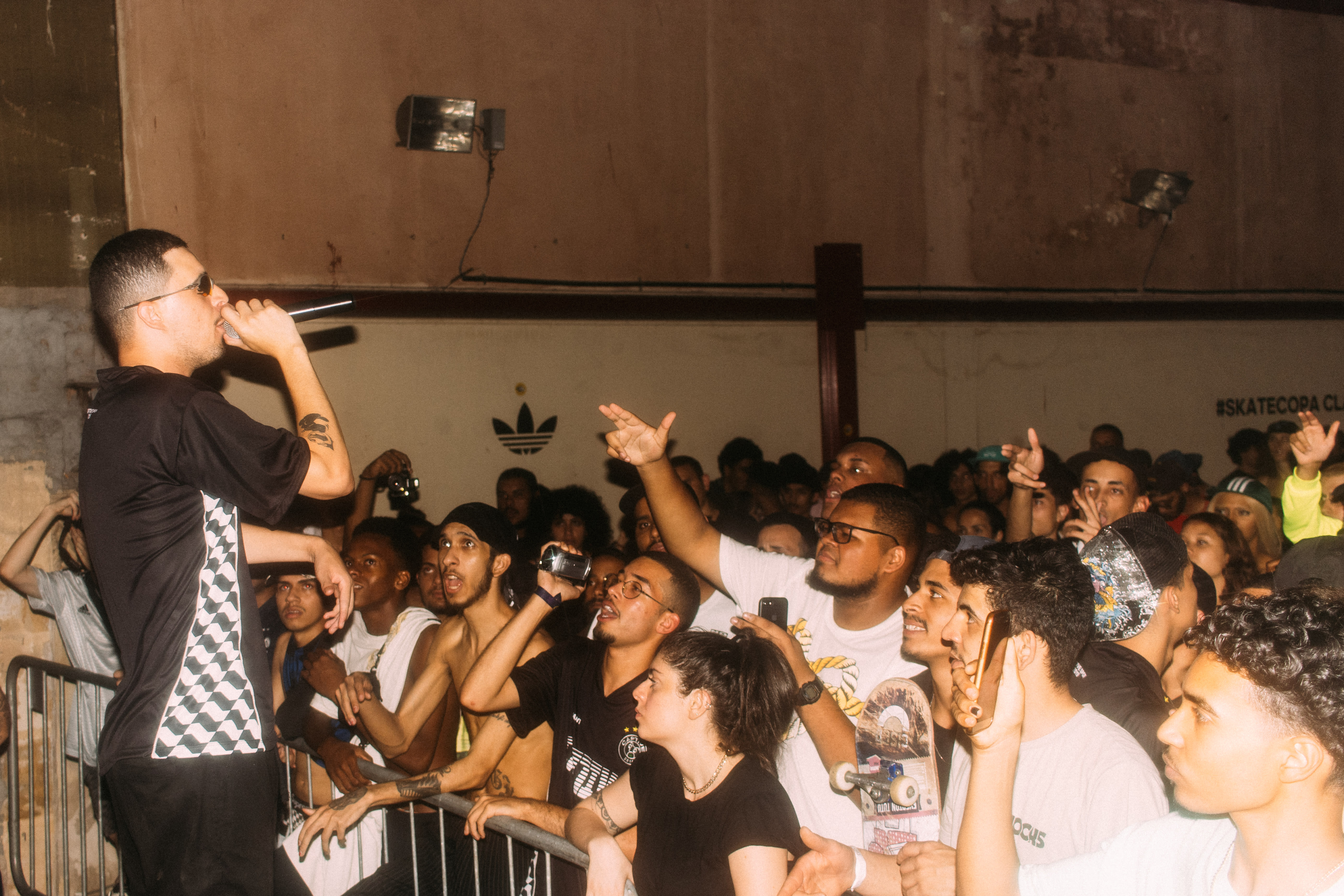 In the evening, I meet them to show them around West London. Cesrv, the only artist among the group who speaks English, mentions how difficult it is for people to leave Brazil due to the cost of flights: “We want to be able to travel outside of Brazil to perform because the market isn’t so big for the music we make,” he explains. “Over there it’s all about baile funk in the charts – even though that’s the watered-down version.” Most rap-based genres are considered underground in Brazil, with entry into the industry incredibly difficult for artists of black origin.