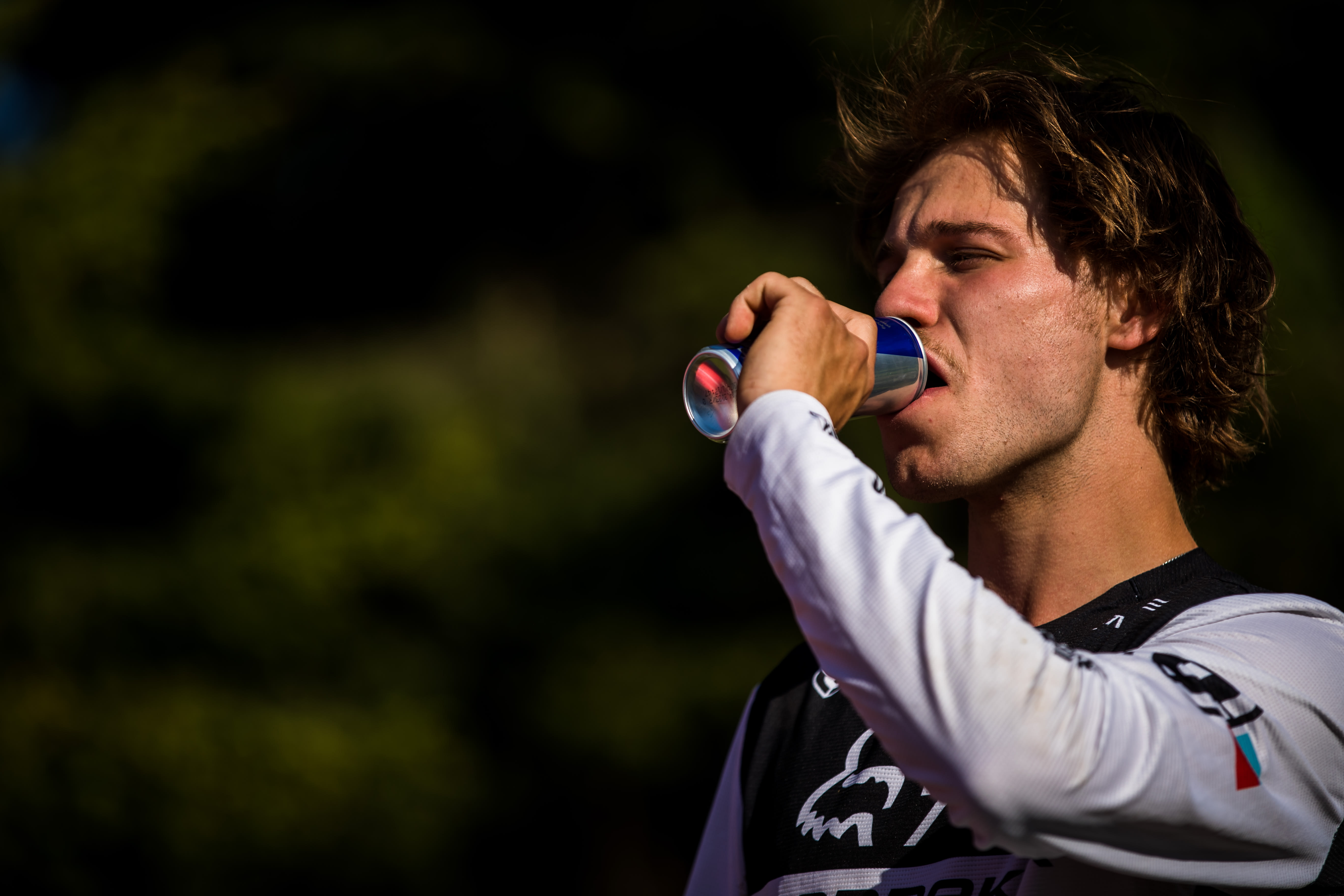 There are two ways I do it. Half a Red Bull about half an hour before I race seems to give me that little pick me up that gets me through my warm up and into things. During training sessions and in race weeks, I quite like drinking the Red Bull Cola. I sip one throughout the day – it's a good way of keeping my sugars and motivation up.