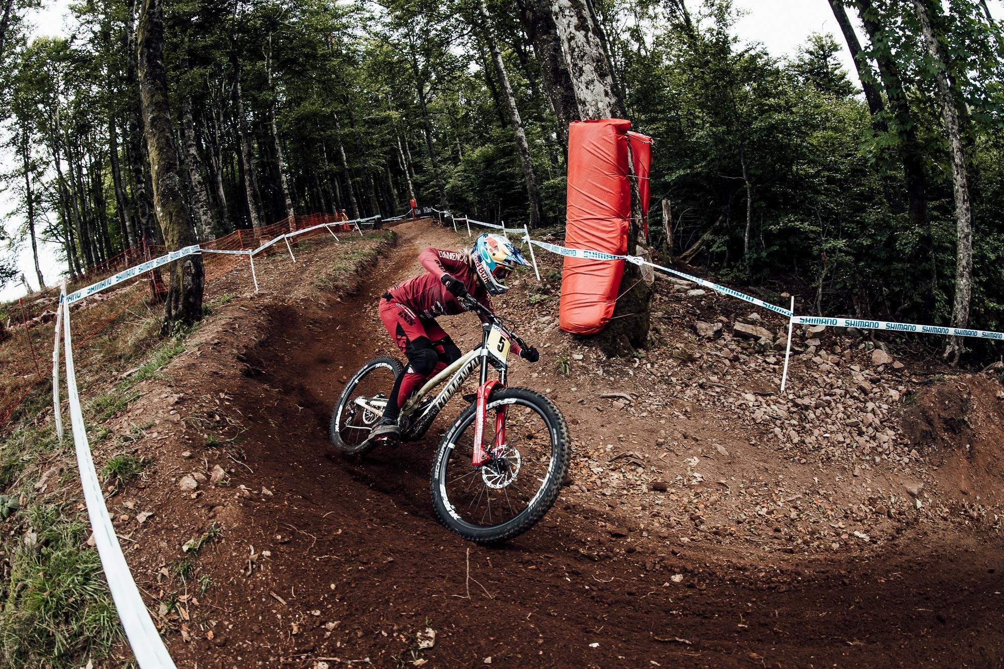 "Try and look for good ground (not wet, boggy, too steep, too flat). It will make life a lot easier when building. Try and control speed where you can. The faster the rider is going, the bigger the turn has to be in order to hold the speed, which means more work. Nice, constant shapes, no drastic changes in direction or sharp angles are key. Always think about water and where it’s going to go. The easiest way is to make it run out of the exit. Tree roots can be a pain to dig around. Try to dig where you think there might be a gap in the roots. It will save your back." – Nikki