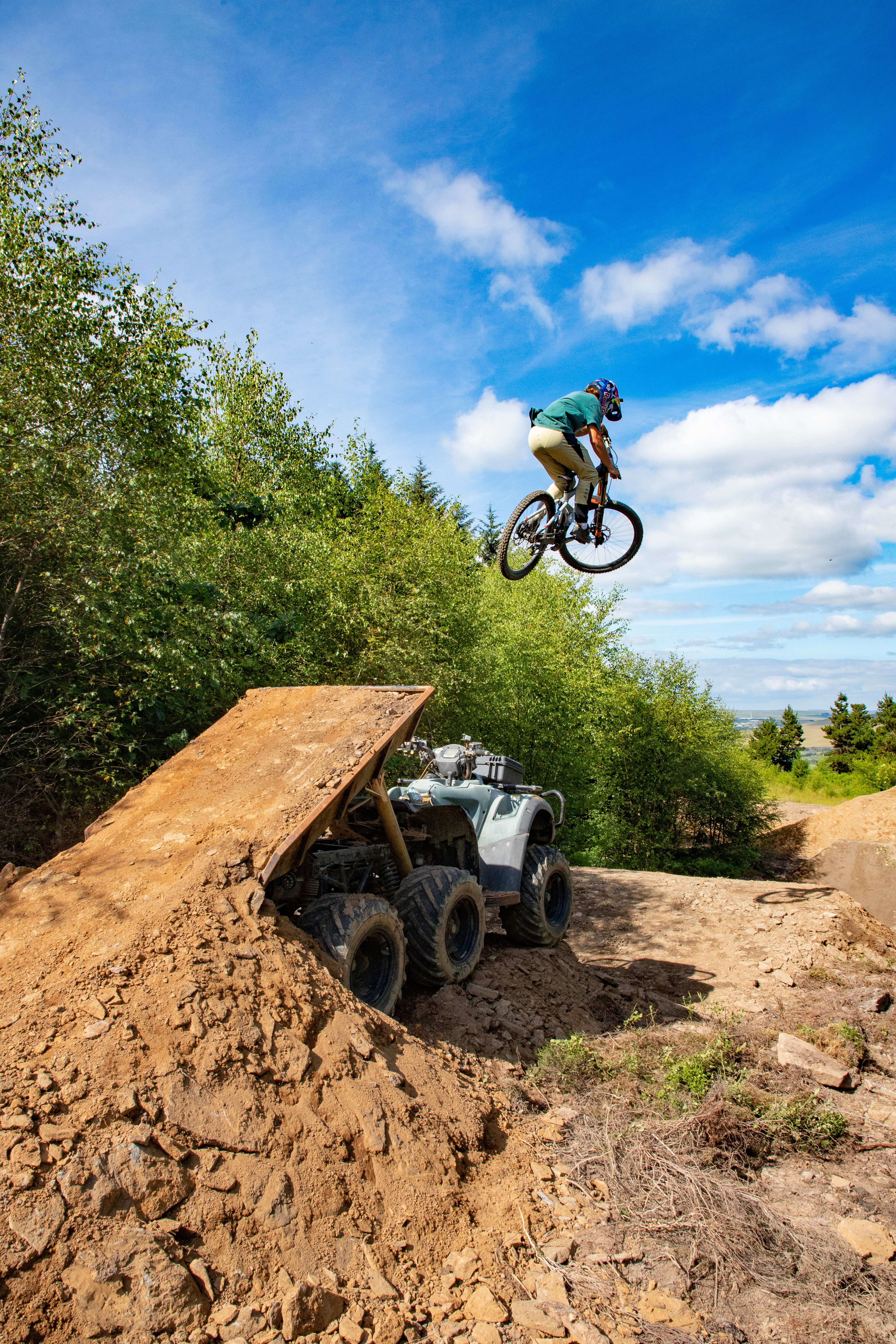 "I’ve never seen anything like that at a bike park. It's quite scary because it's fully blind and looks a bit intimidating with a quad there. You want a fair bit of speed going into it, and you want to pull up a little bit as well, and do a nice little pop off the end. The landing is super predictable and long, so you don't need to worry too much about going long."