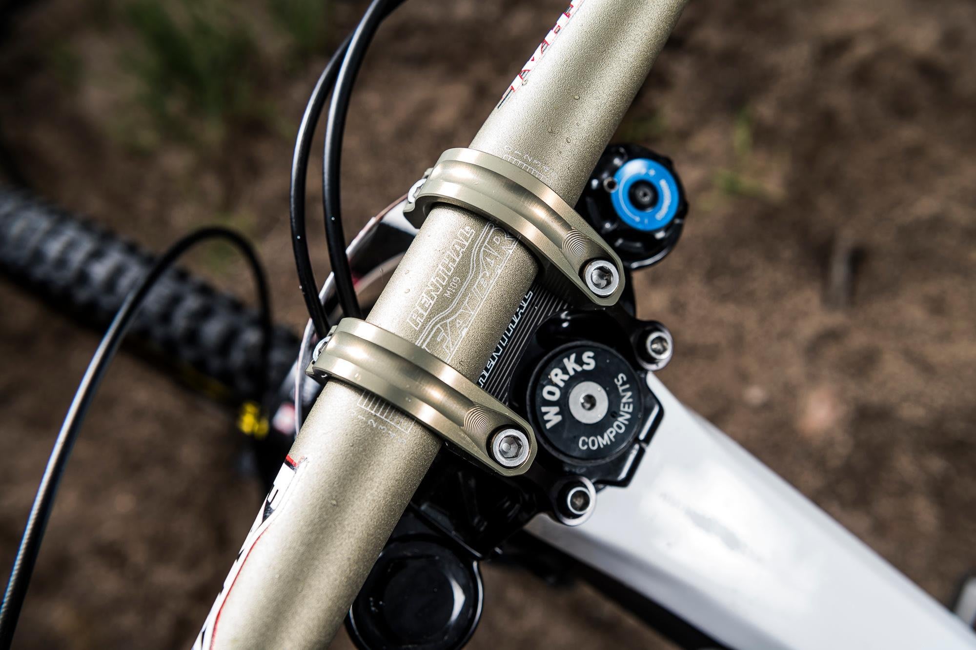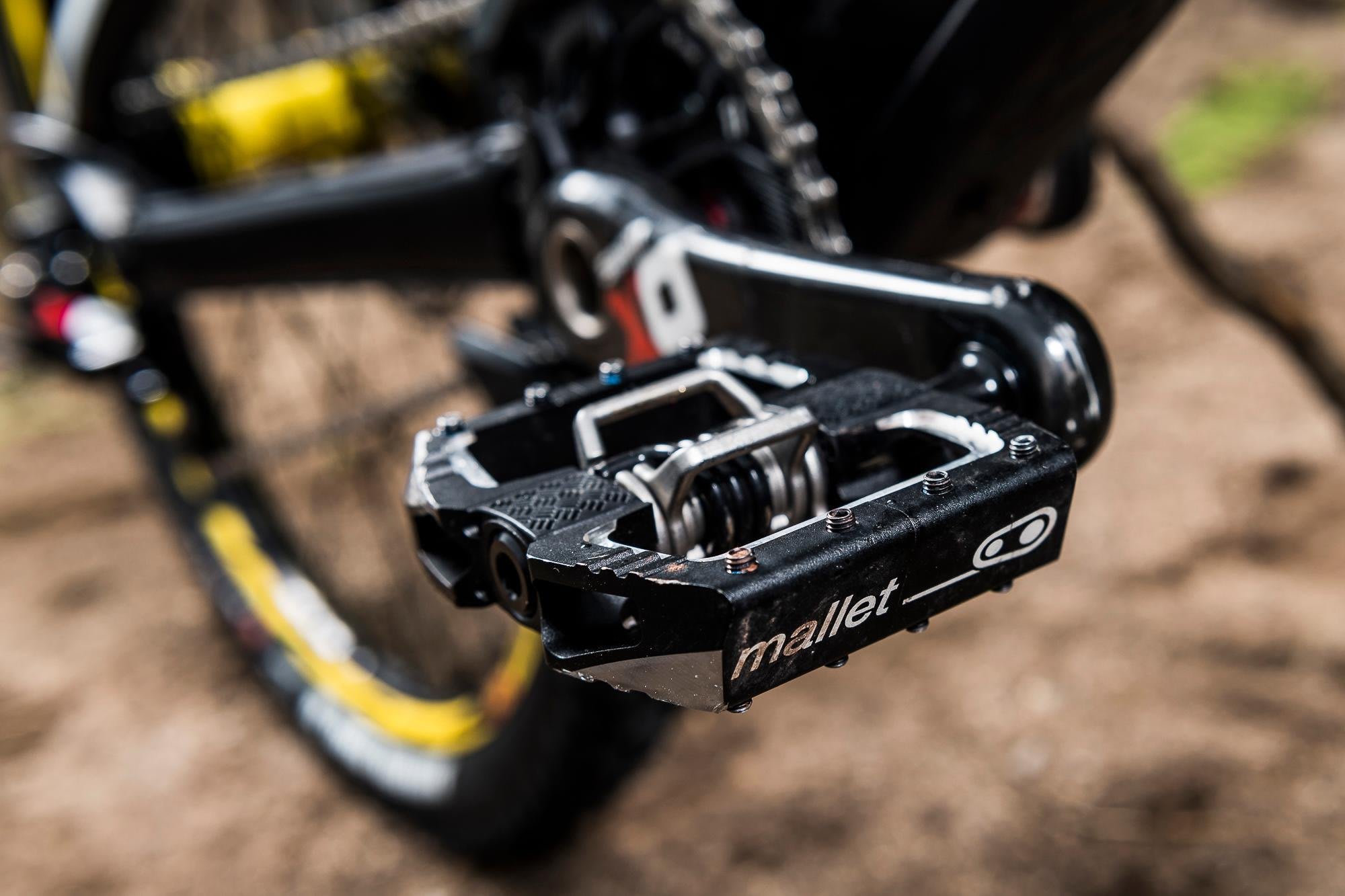 "Troy probably has the most distinctive riding style. You see him hop around a lot and ride really light, and for him to do that on this bike he really needs a lot of support in the mid-stroke of the shock to have something to push off and be able to hop. Mark smashes into stuff a bit more, and he needs something that's a little more progressive and has more resistance to bottom-out, so that's why he's on the silver linkage."