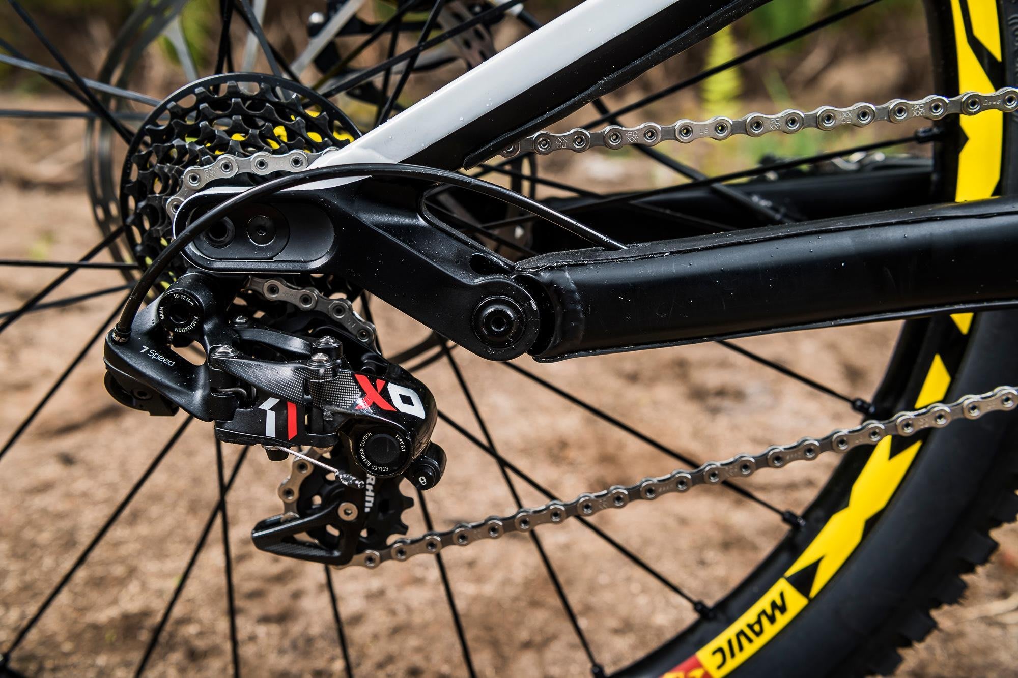 "Canyon have been really reactive and really supportive through our testing. It took around five or six weeks for each generation of linkage to come through. Mark's on the second-generation linkage, which is the silver one, and Troy is running the first generation, which is black. They have different amounts of ramp up and different support in the mid-stroke."
