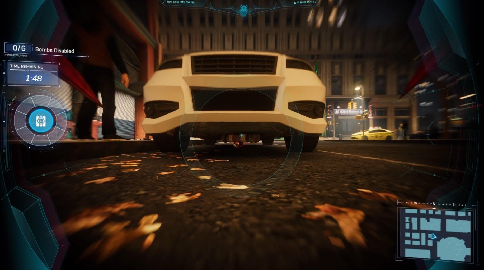 There are plenty of crimes to solve in The Heist, but many follow similar patterns to the ones that you’re used to. There is a new type of crime on offer, and it requires the use of your Spider-Bot. A handful of bombs have been armed, and you must control the Spider-Bot to find them.