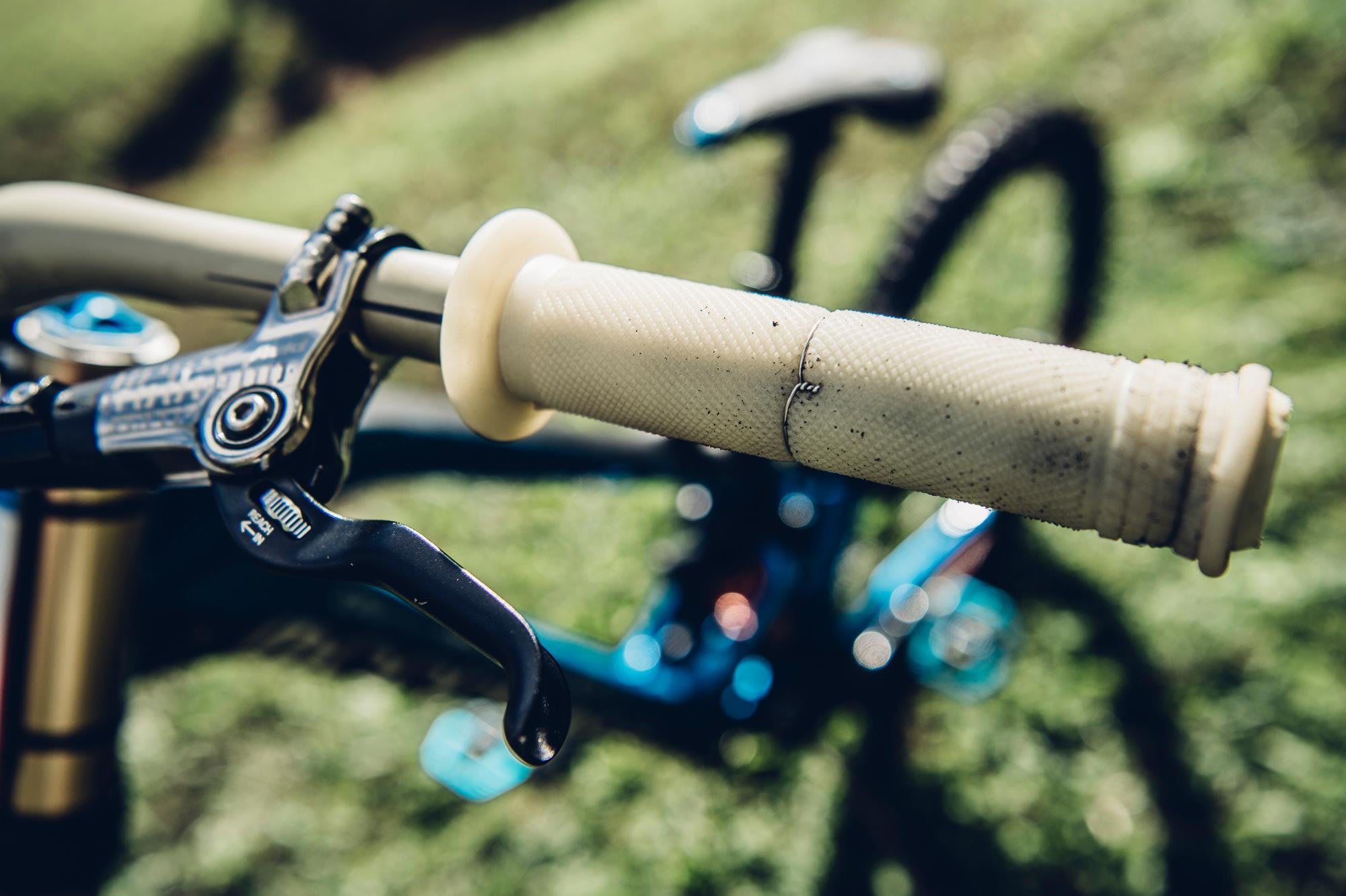Personal touches: Renthal's slide-on Kevlar grips are kept in place with grip glue and wire for added security