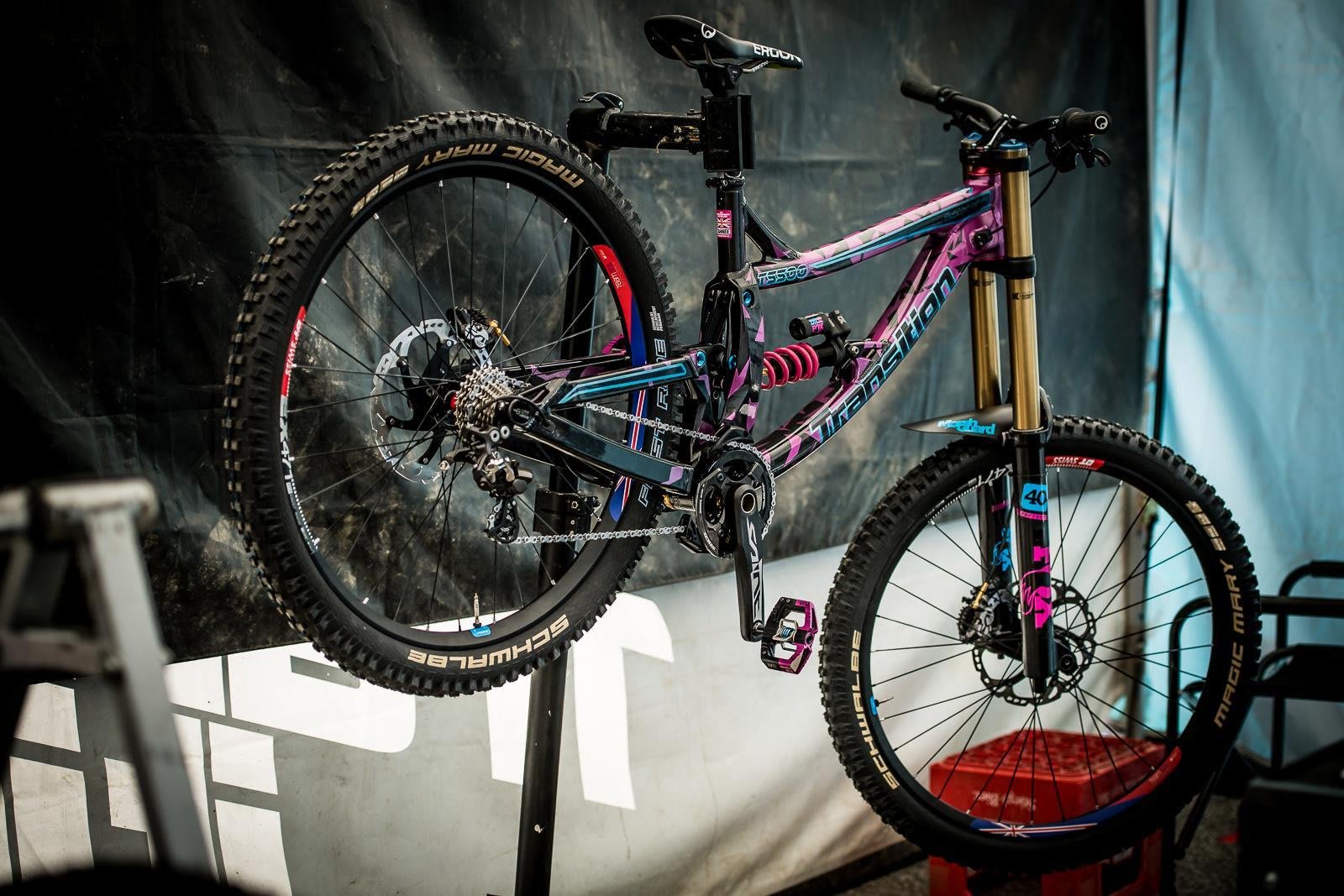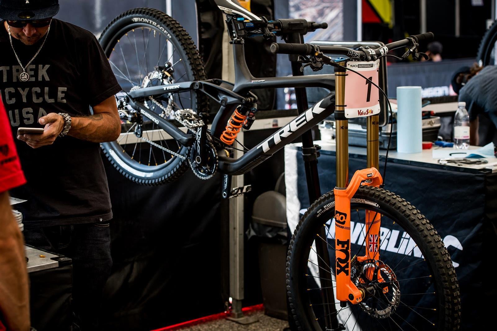 Custom details: The blacked out Trek Session is actually raw carbon – saving extra grammes of weight. Every little helps for the World Champs race.