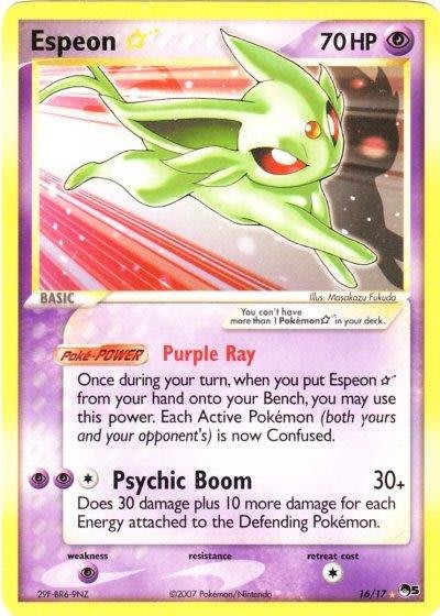 The only way to get this card in English was in POP series packs, which you received via the Pokémon Organised Play system at events. So due to the inconvenient way of obtaining Espeon, it's one of the rarest Shiny Pokémon cards out there.