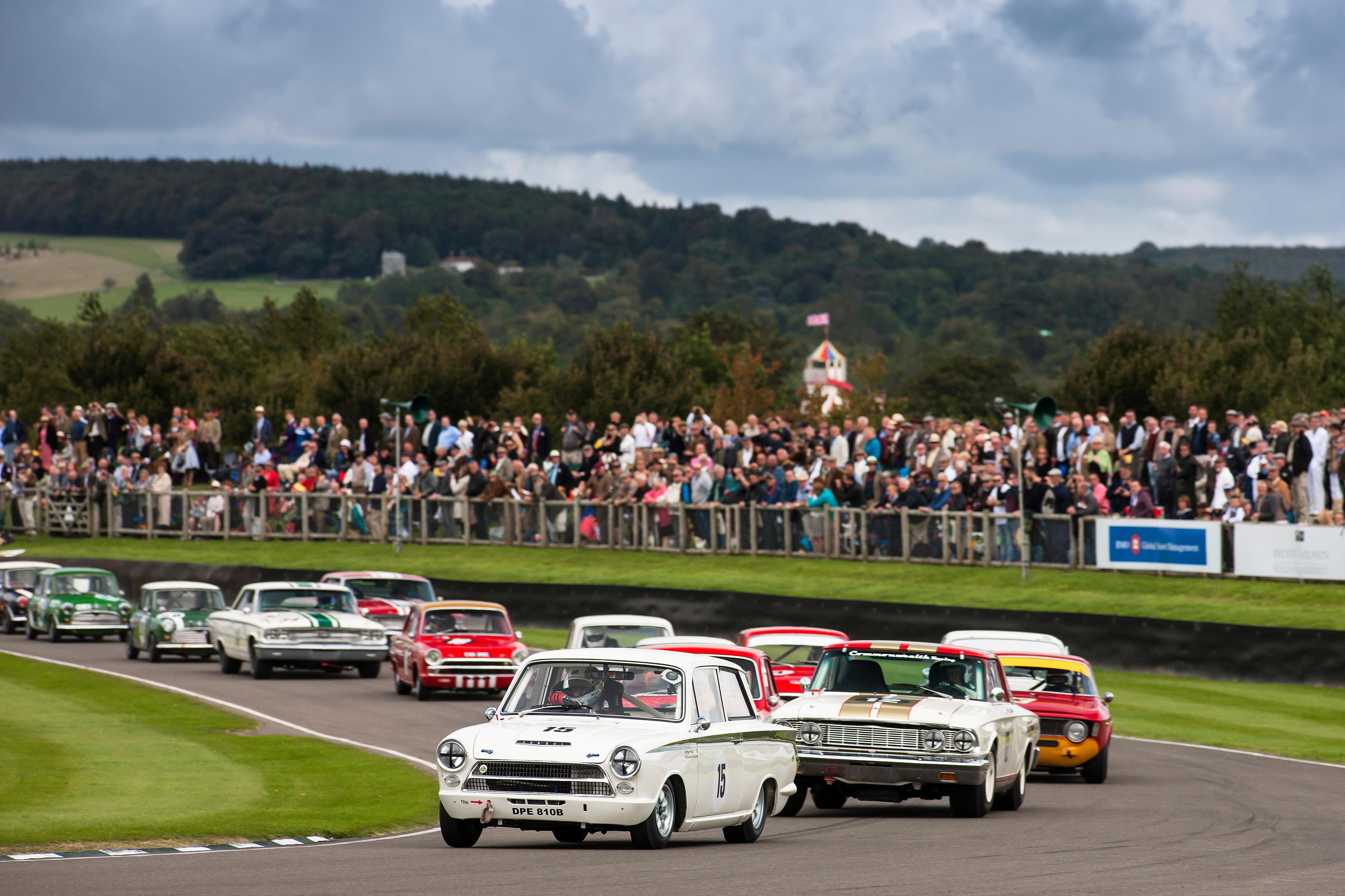 Chocks away, Ginger! Jaguar E-Types, Ferrari 250 GTOs and Ford GT40s whizzing around the track while Spitfires and Lancaster Bombers soar through the sky. There is no motorsport event quite like the Goodwood Revival.