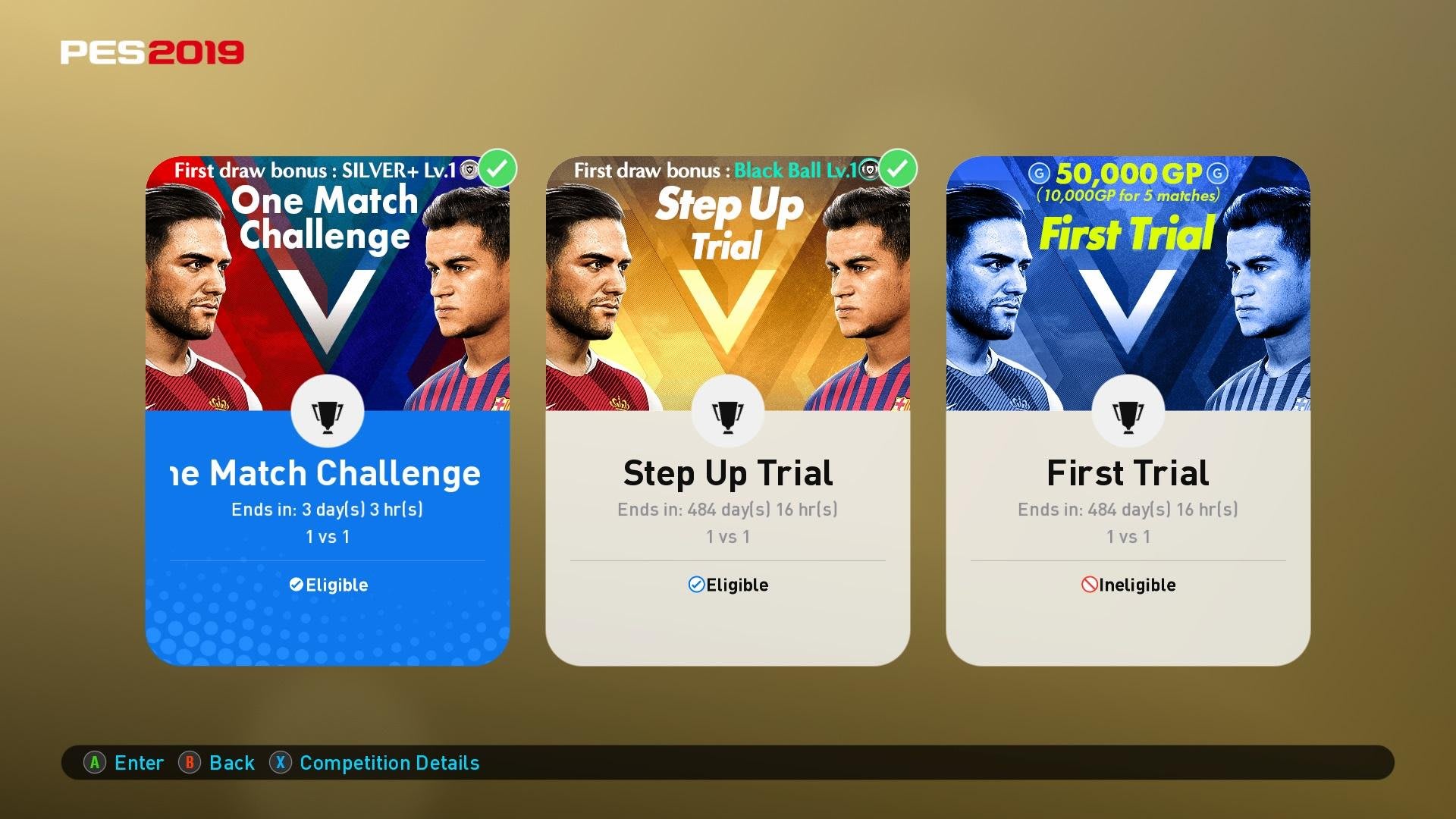 If you’re a returning PES fan, you might have noticed that Divisions has disappeared this year. In its place is the Weekly PES League – a system for earning GP based on your performances in ranked matches. Firstly, you need to complete 10 ranked matches in myClub. Then, go to the Weekly PES League tab and you’ll be entered into a division. Win games and you’ll earn points, which equates to more weekly GP and promotions to better leagues.