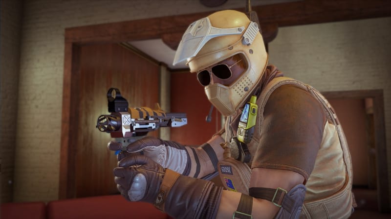 The side-arm Desert Eagle of Valkyrie has a remarkable potential for destruction and can easily make holes in ceilings, floors and furniture to hide your cameras, but if you want to be really invested you can hide your C4 around an area where the attackers are likely to go, ping the spot, and then go to your camera to see exactly where that ping is. Then you just have to sit and wait while watching your camera, before detonating the C4. There's no cleaner kill.