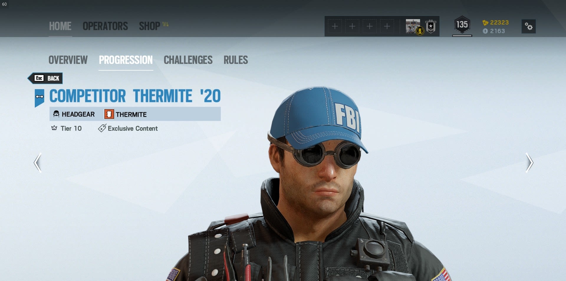 Normally never seen without a hard helmet of some kind, Thermite has decided to take it easy in the name of sport and join Ash as an operator who can chill in the best sunhats the FBI have to offer. It is not known if the cap provides adequate protection from the blinding light of your own flashbangs thrown clumsily through a Thermite hole as it does the sun.