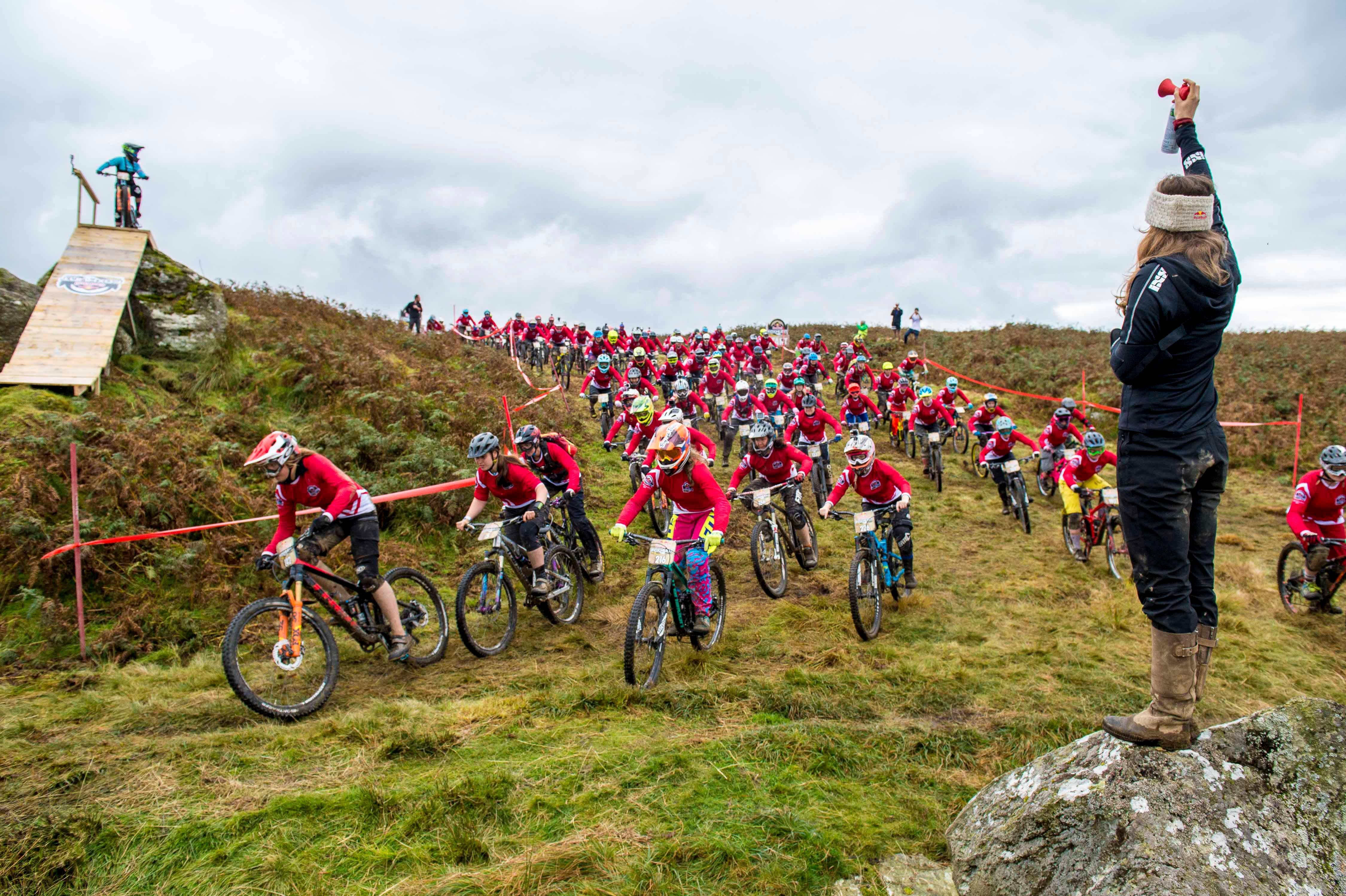 Rachel Atherton was also at the startline to kick off the race and support the ladies as the 'fox' Katy Winton chased them down the hill towards the finish line.