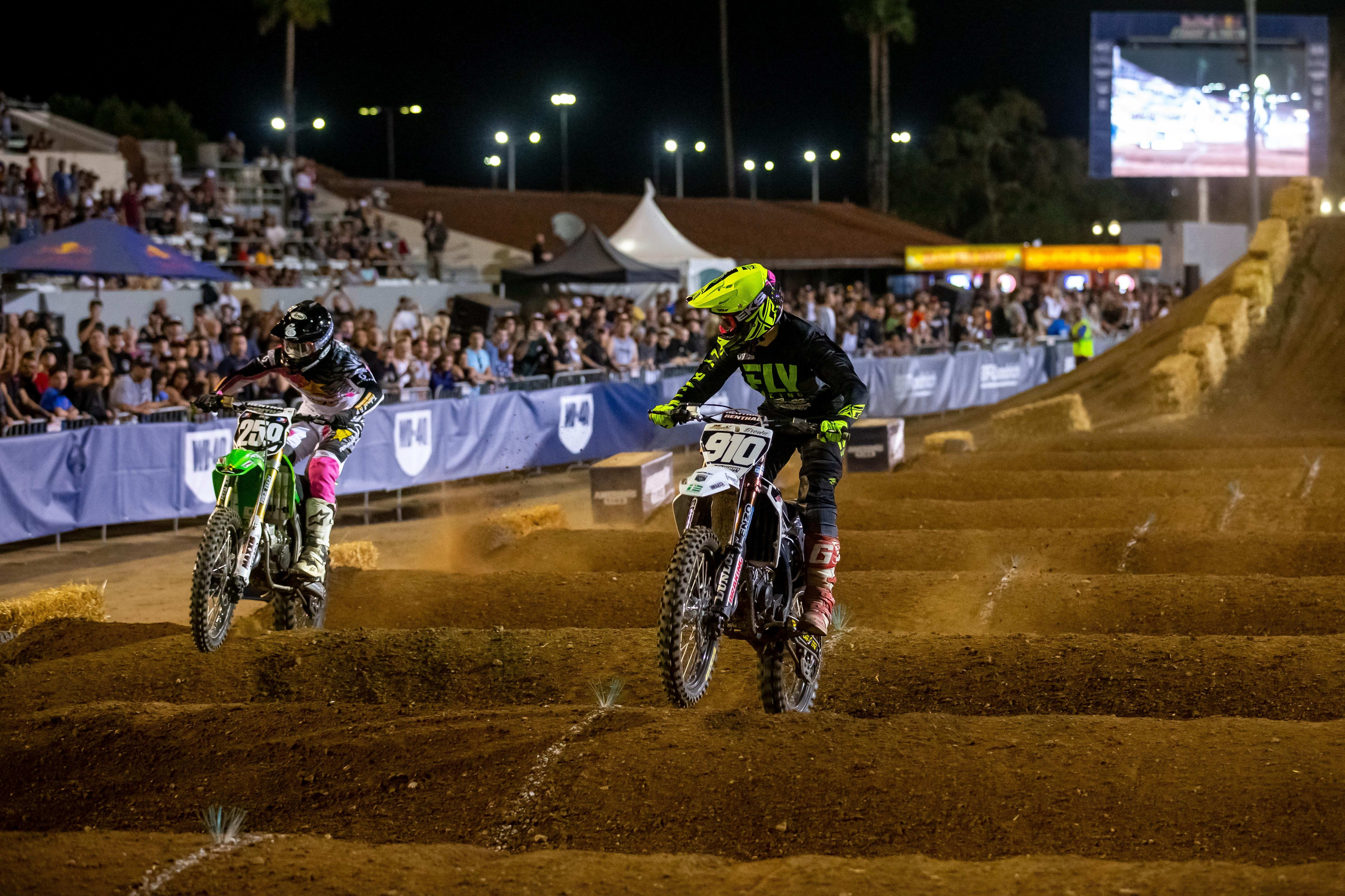 With throttles twisted and exhaust pipes screaming, the two riders streaked down the course side-by-side, both stubbornly refusing to surrender an inch. When they soared over the finish-line jump, they were so close that nobody knew who’d won. In the end, Villopoto took the win by one 100th of a second.