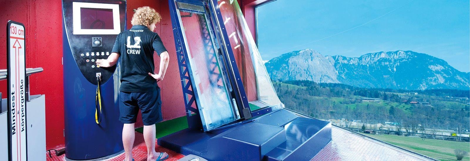 Riders step into a clear capsule with stunning alpine views and wait for the hatch to open. Then comes 14m of freefall, accelerating to 40mph to hit the world’s first double-loop. Some are too light to make the second loop – and drop out through a trapdoor.