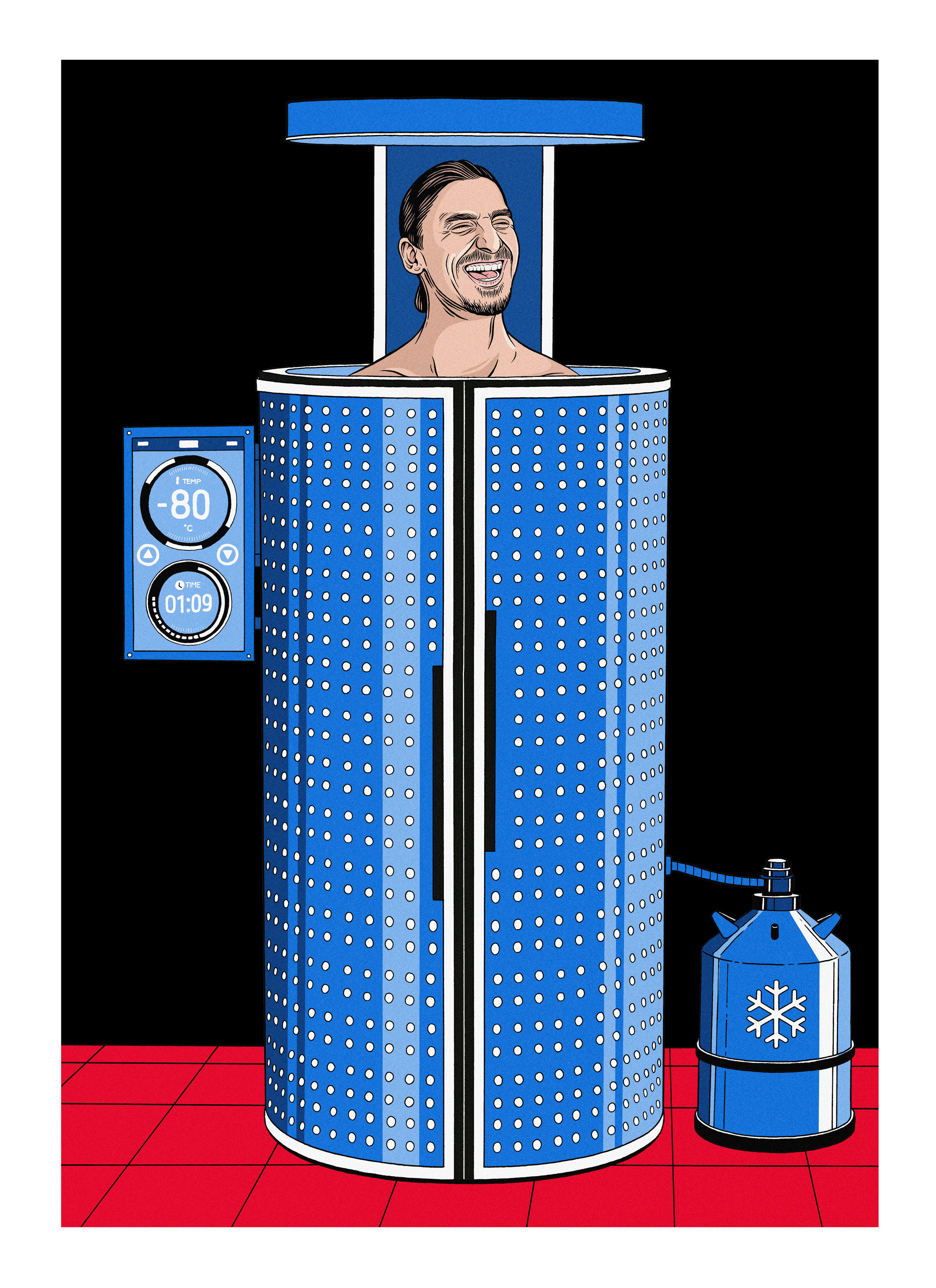 The ever-young old star is a great believer in Wim Hof-style cold therapy, as he posted to his Instagram in December, when his followers saw him dive into fresh snow in his Milan garden wearing nothing but swimming trunks. Like many others, including Cristiano Ronaldo and the Leicester City football team, the Swede believes in the magic powers of the cryotherapy chamber – a kind of domestic anti-sauna in which the temperature can drop to -160°C. You spend about three minutes a day in this mobile deep-freeze. The cold sends the body into shock and blood vessels contract, only to expand later and flood the body with blood full of anti-inflammatory substances.