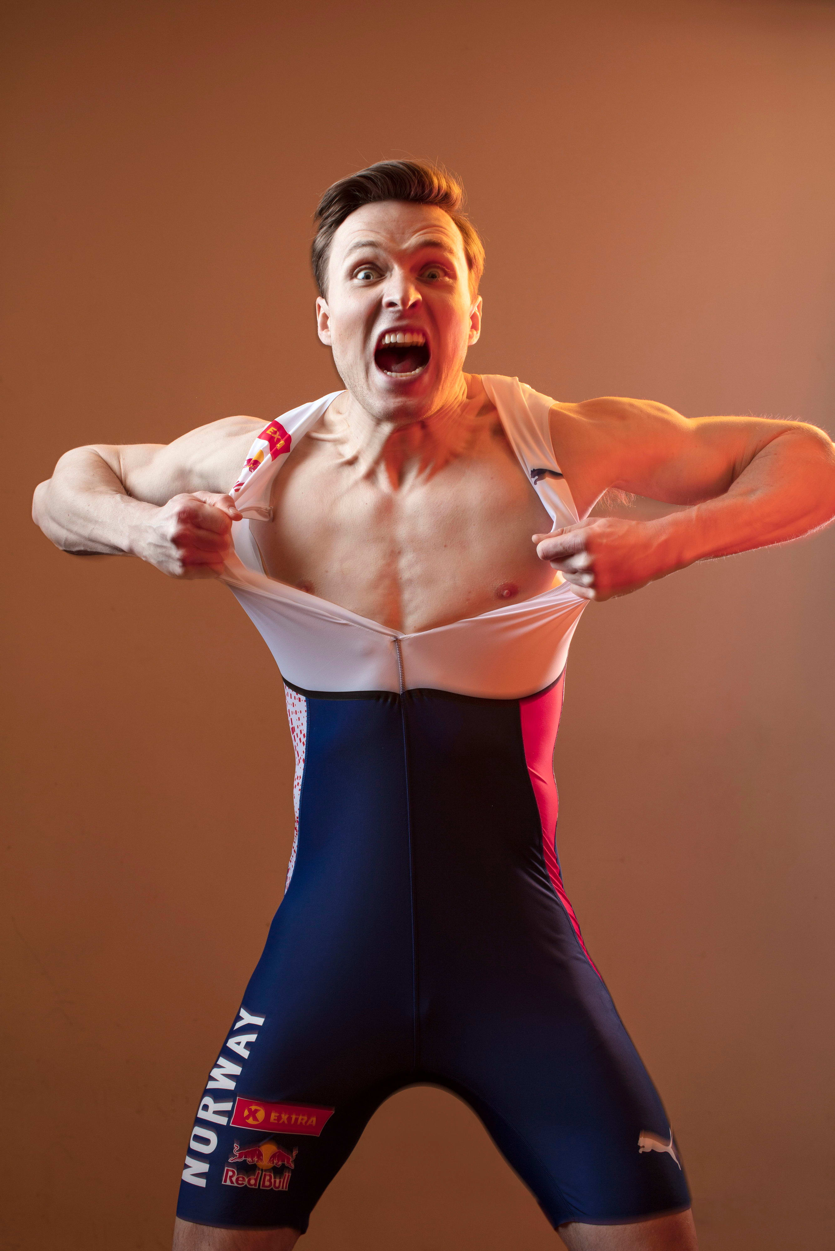 “It was a bit embarrassing, actually – it took me two goes to rip my top,” the 26-year-old Norwegian recalls of his impulsive, chest-exposing victory celebration, beamed to viewers across the world. “There I was, trying to be Superman, and I couldn’t even tear my own costume.”